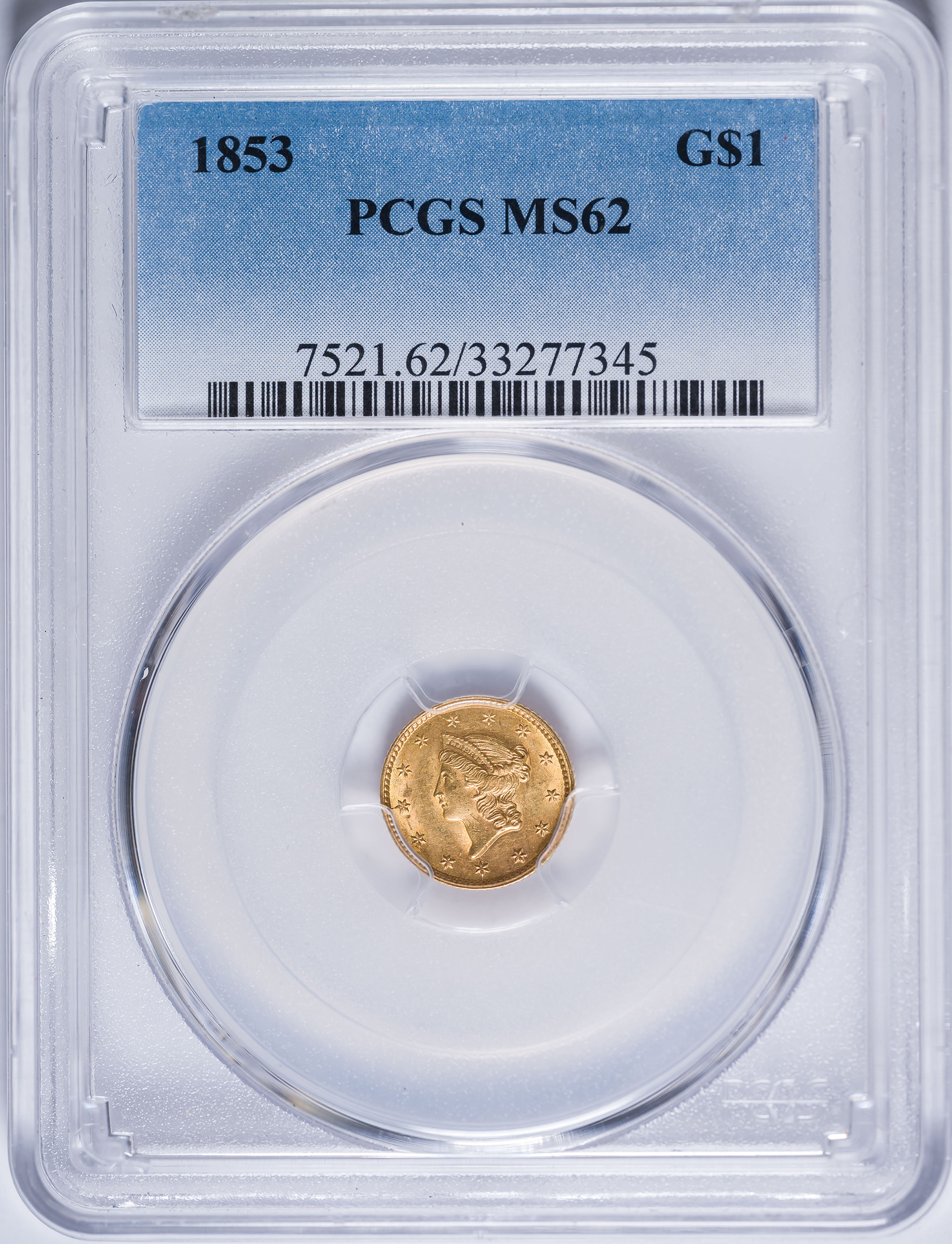 PCGS MS-62 1853 $1 Gold