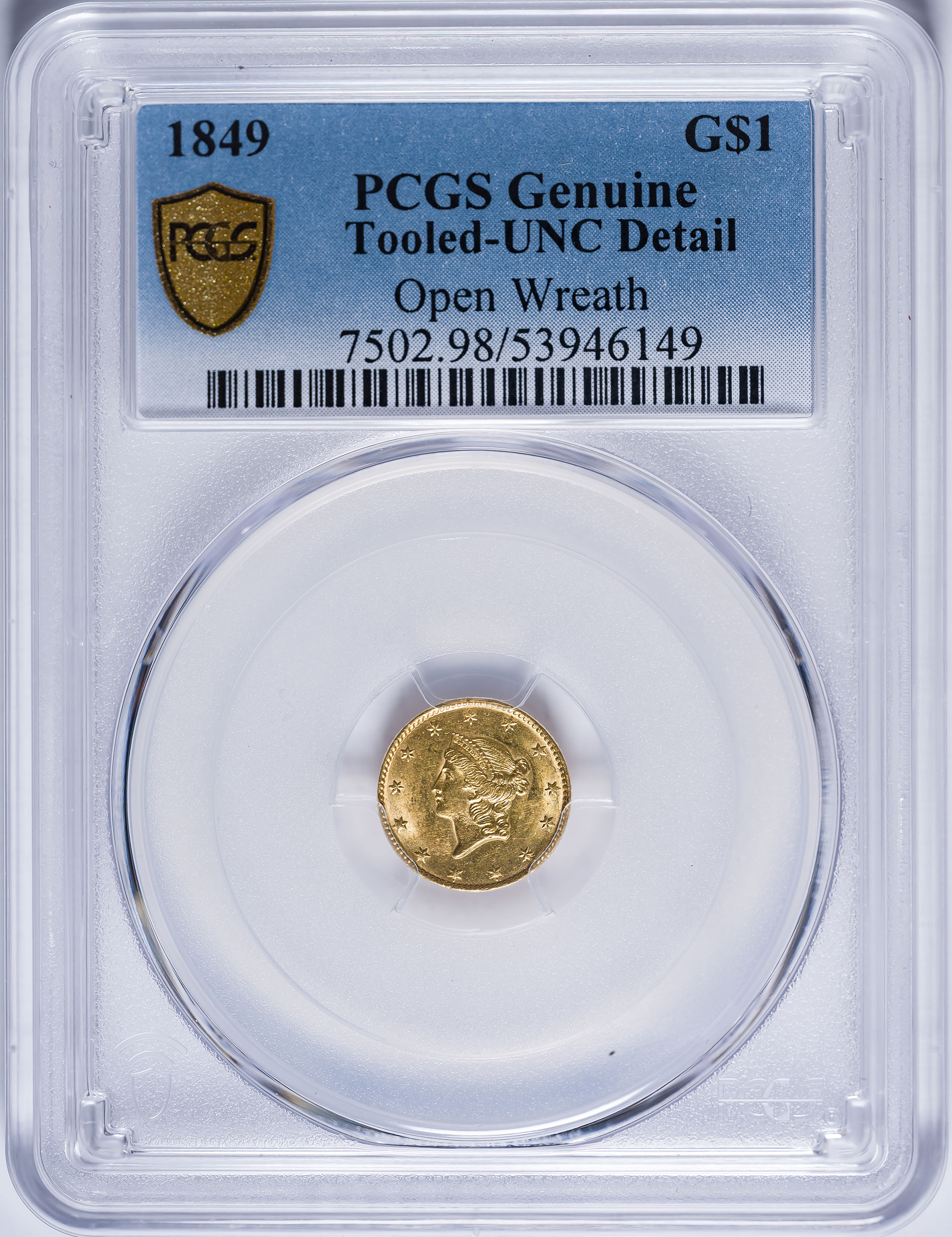 PCGS UNC Details 1849 $1 Gold