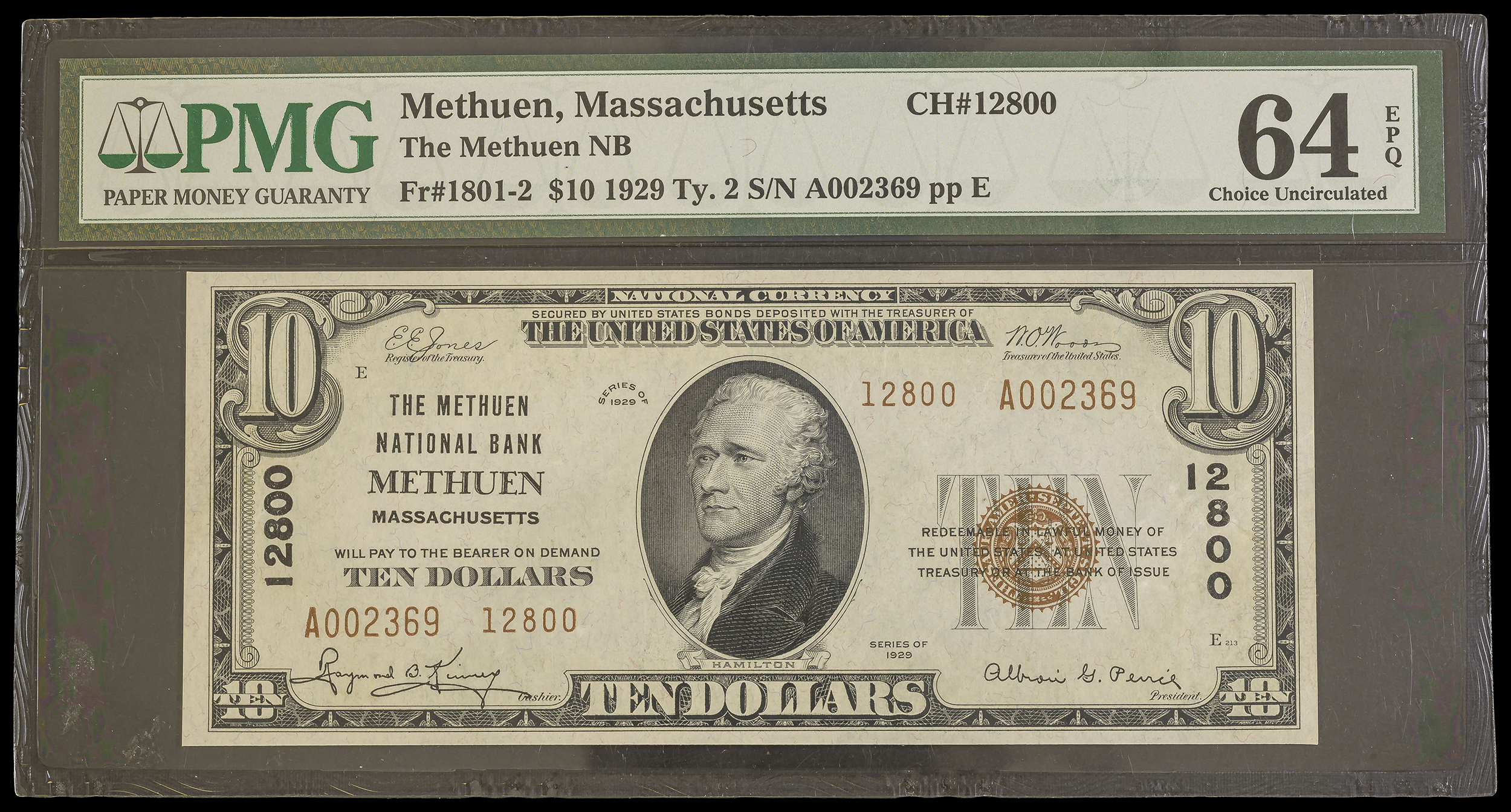 PMG-64 EPQ 1929 Methuen MA $10 National
