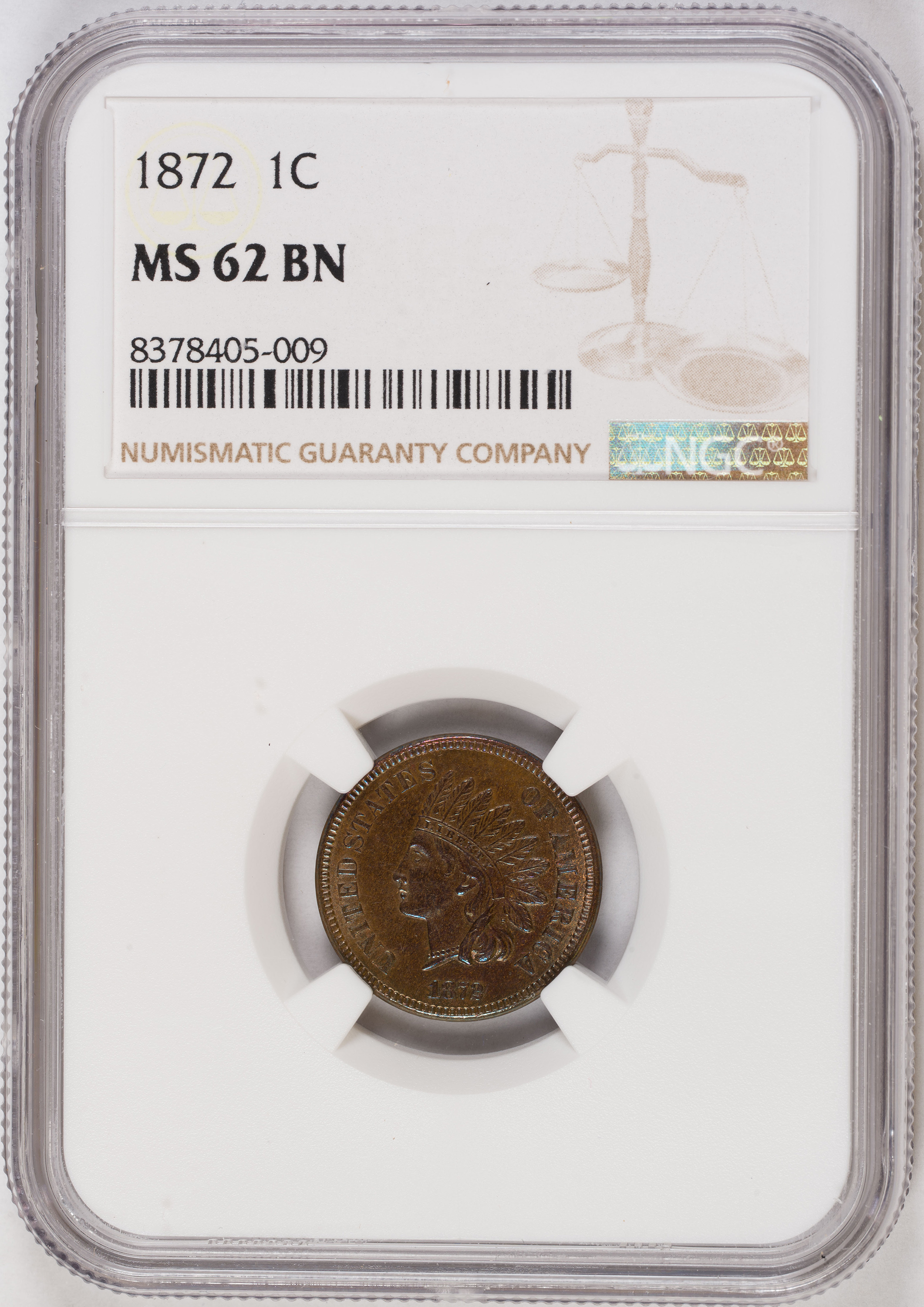 NGC MS-62 BN 1872 Indian Cent