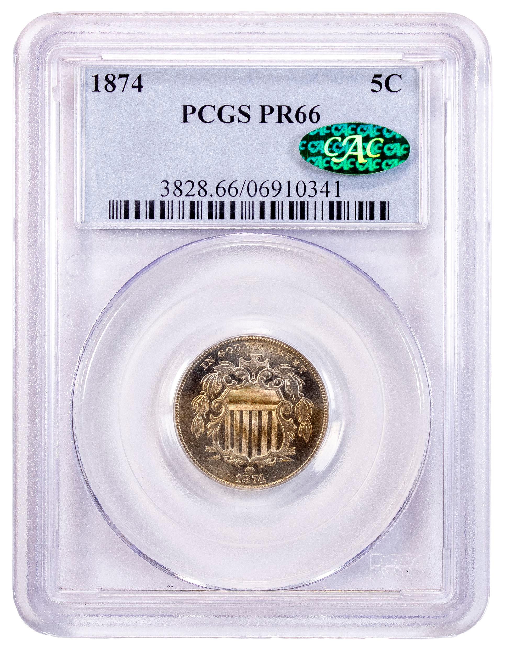 PCGS Proof-66 CAC 1874 Shield Nickel