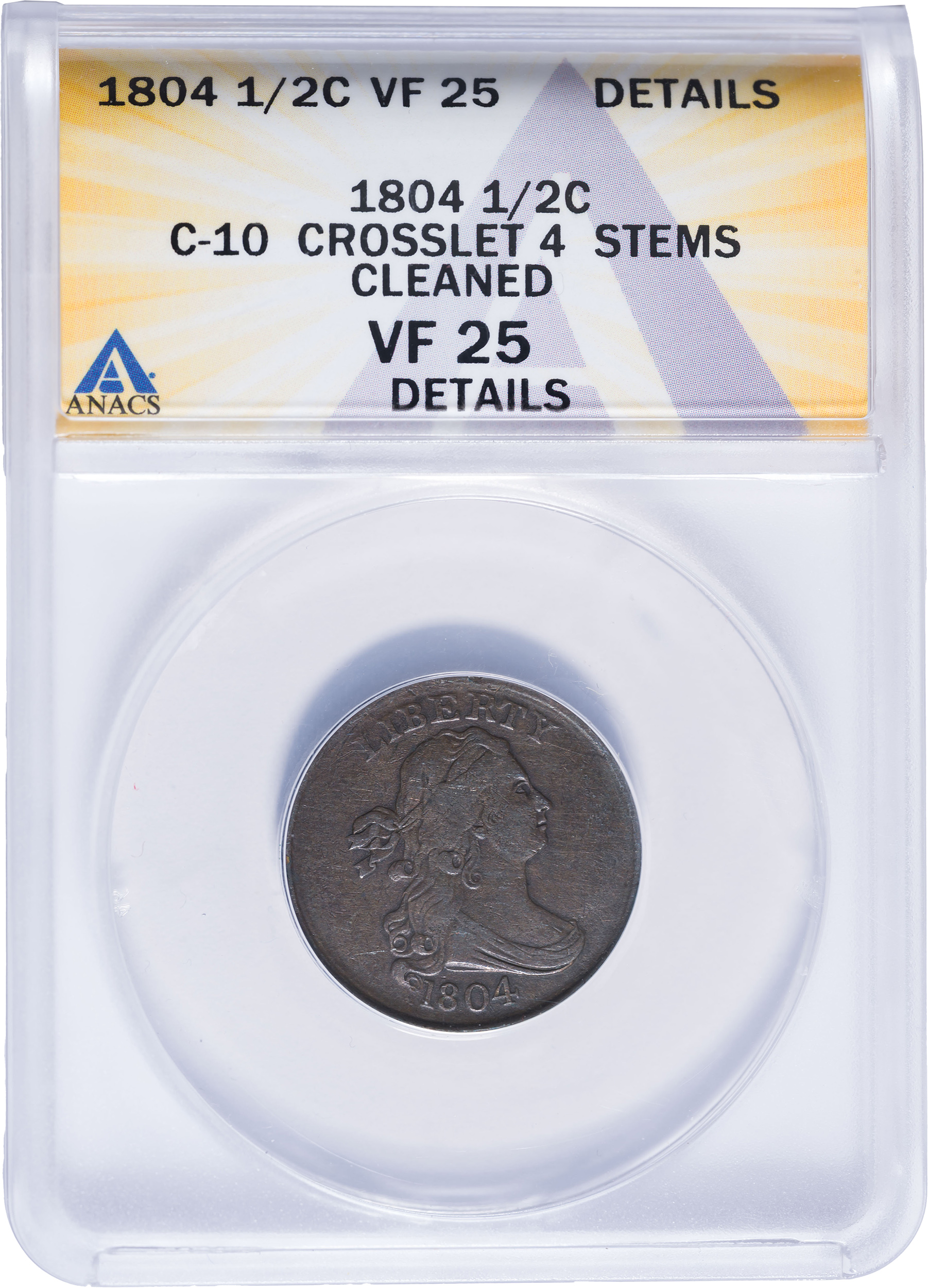 ANACS VF-25 Details 1804 Half Cent