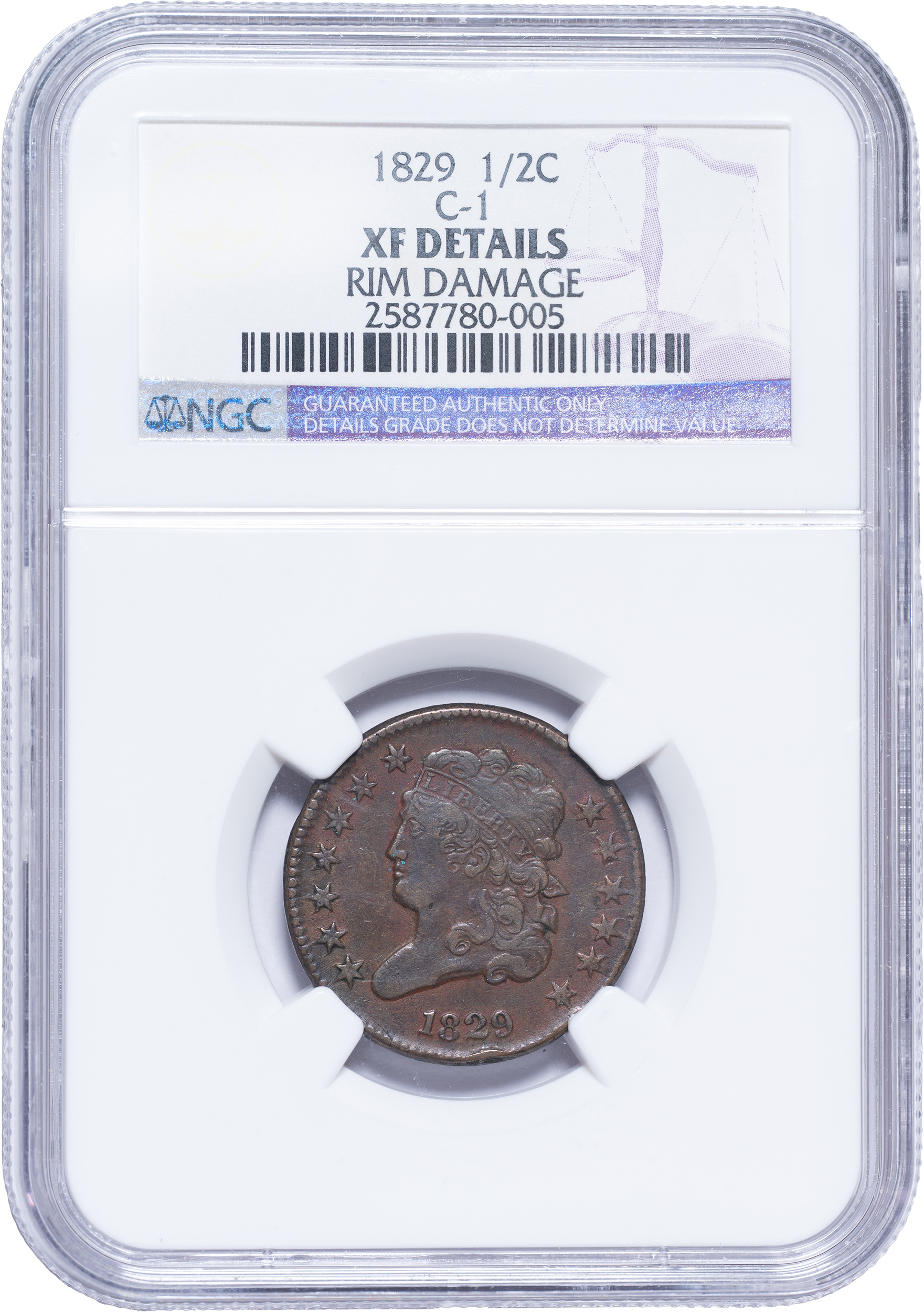 NGC EF Details 1829 Half Cent
