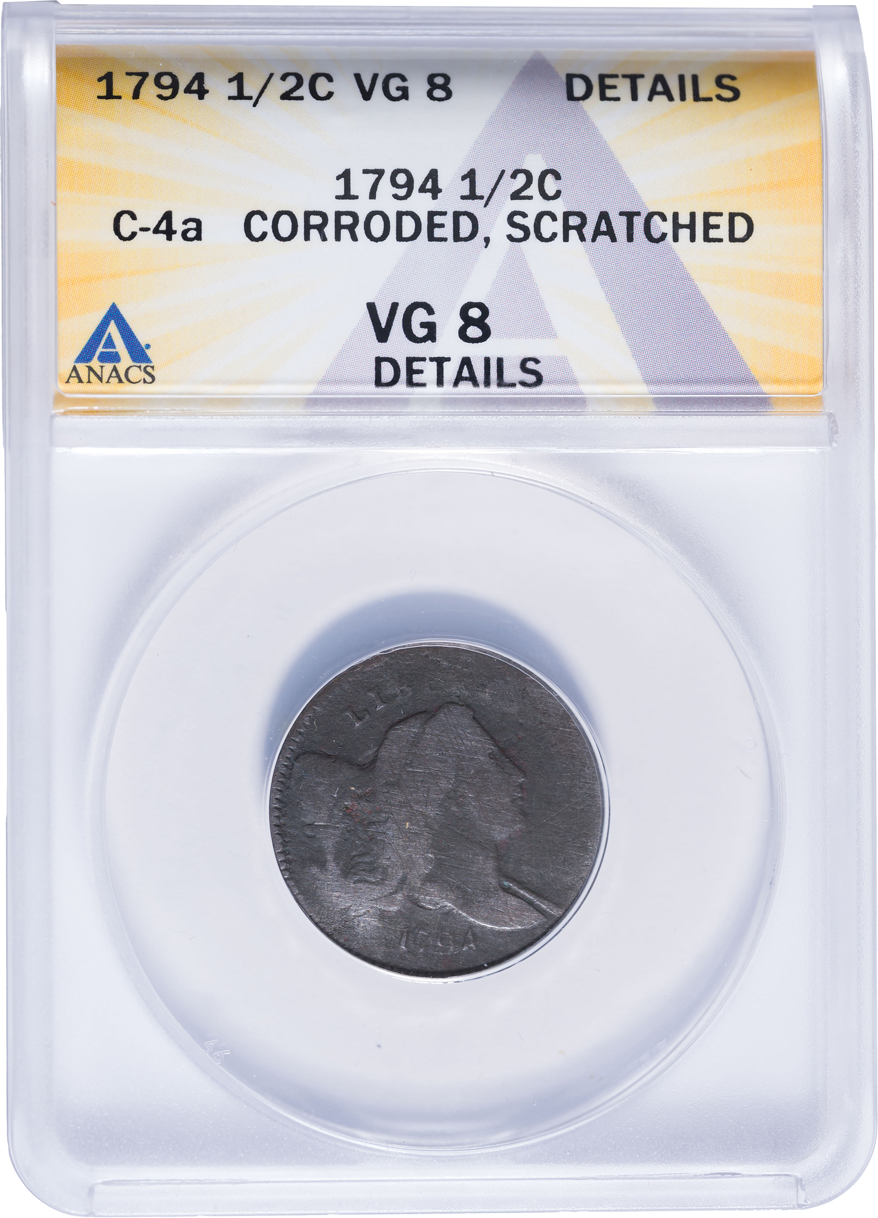 ANACS VG-8 Details 1794 Half Cent