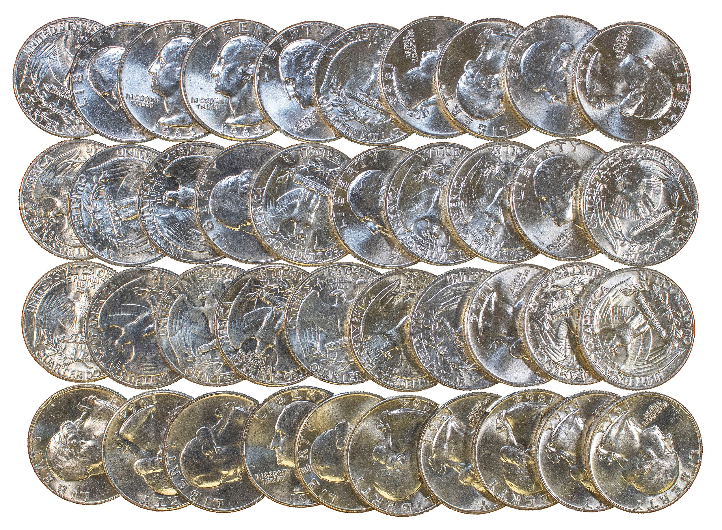 Brilliant Unc Roll 1964 Washington Quarters