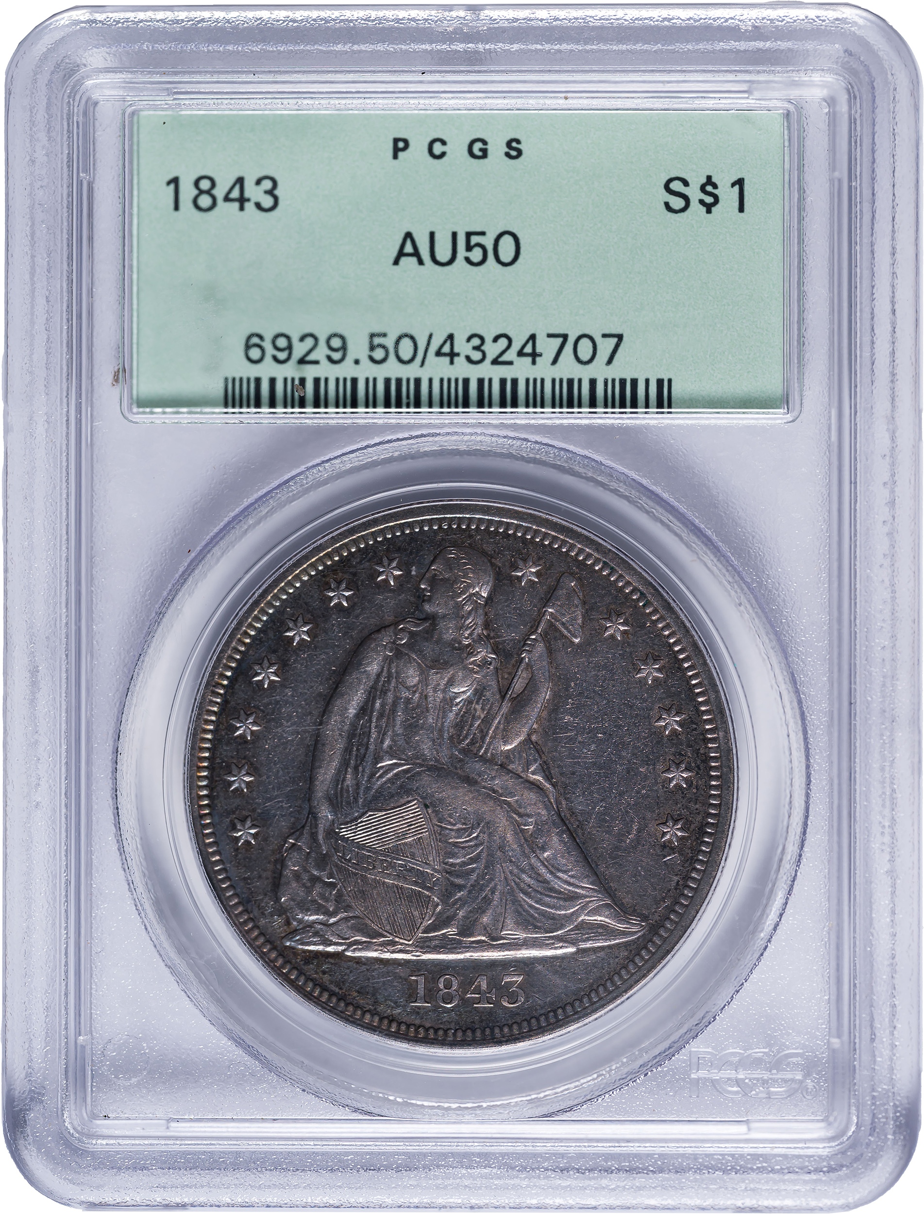 PCGS AU-50 1843 Seated Dollar