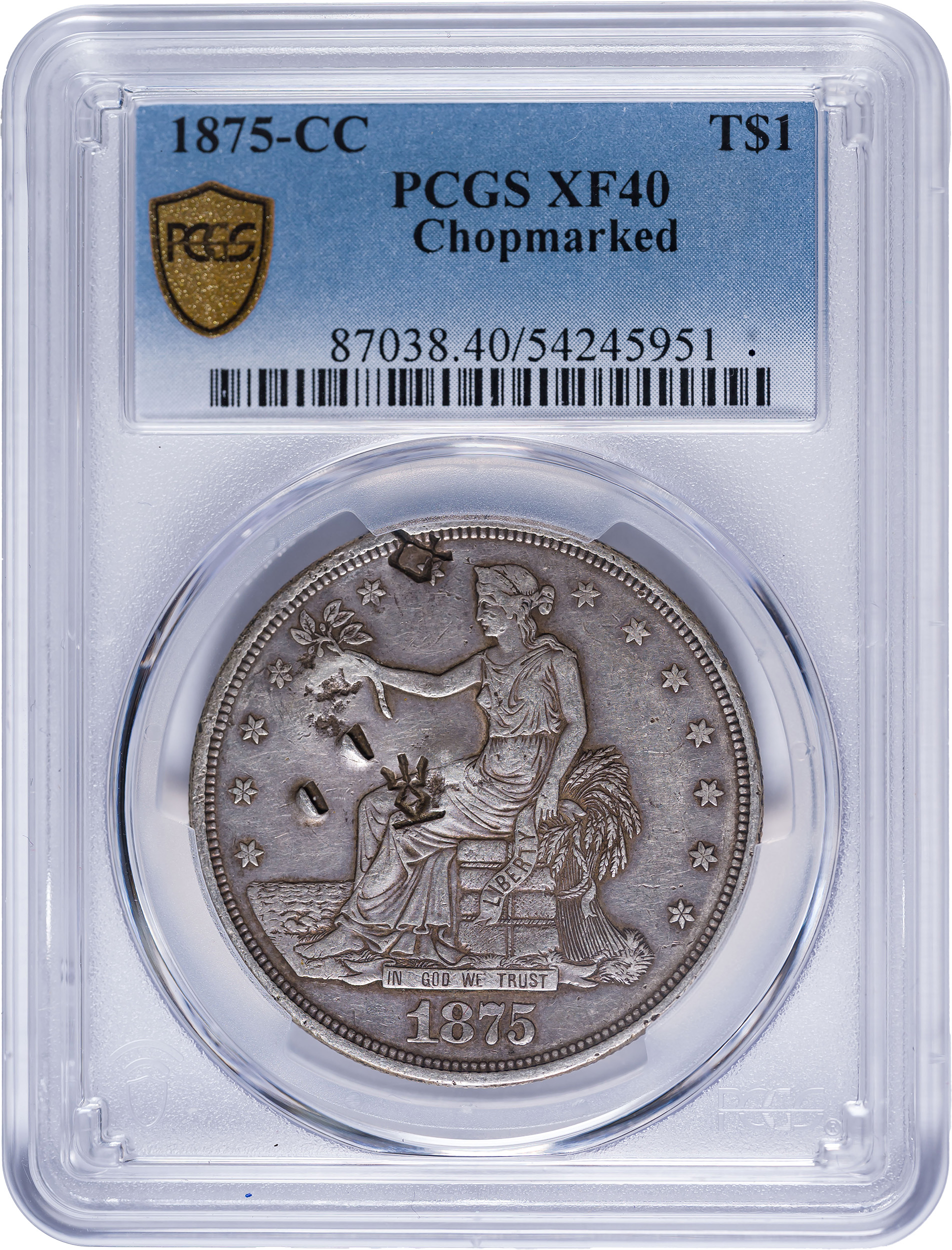 PCGS EF-40 1875-CC Chop Marked Trade Dollar