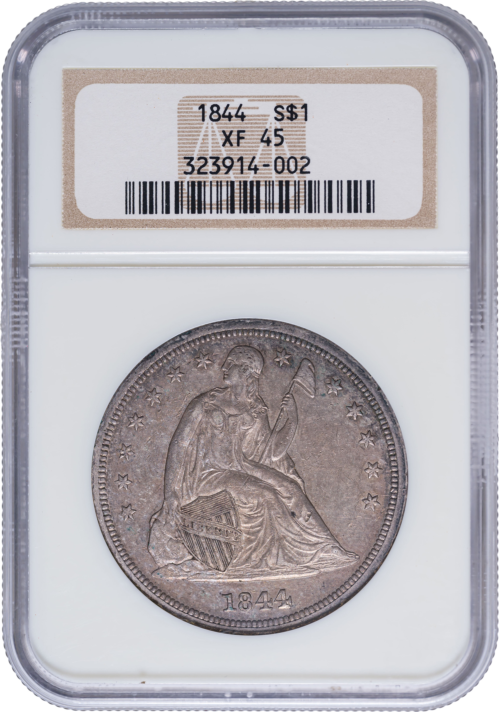 NGC EF-45 1844 Seated Dollar