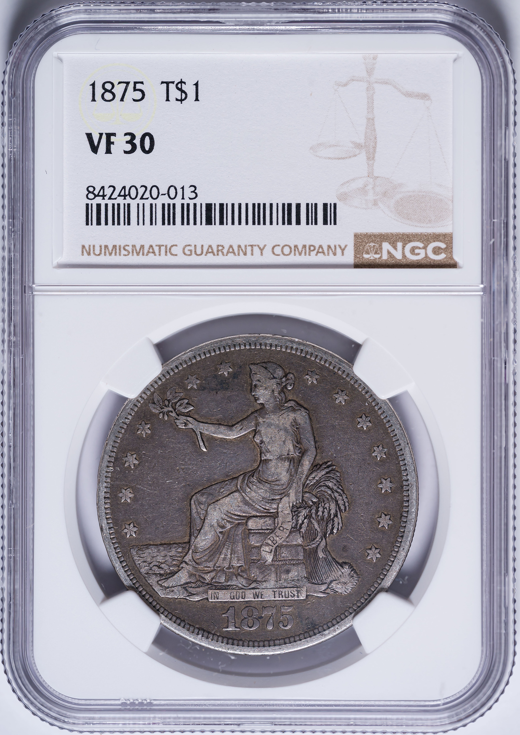 NGC VF-30 1875 Trade Dollar