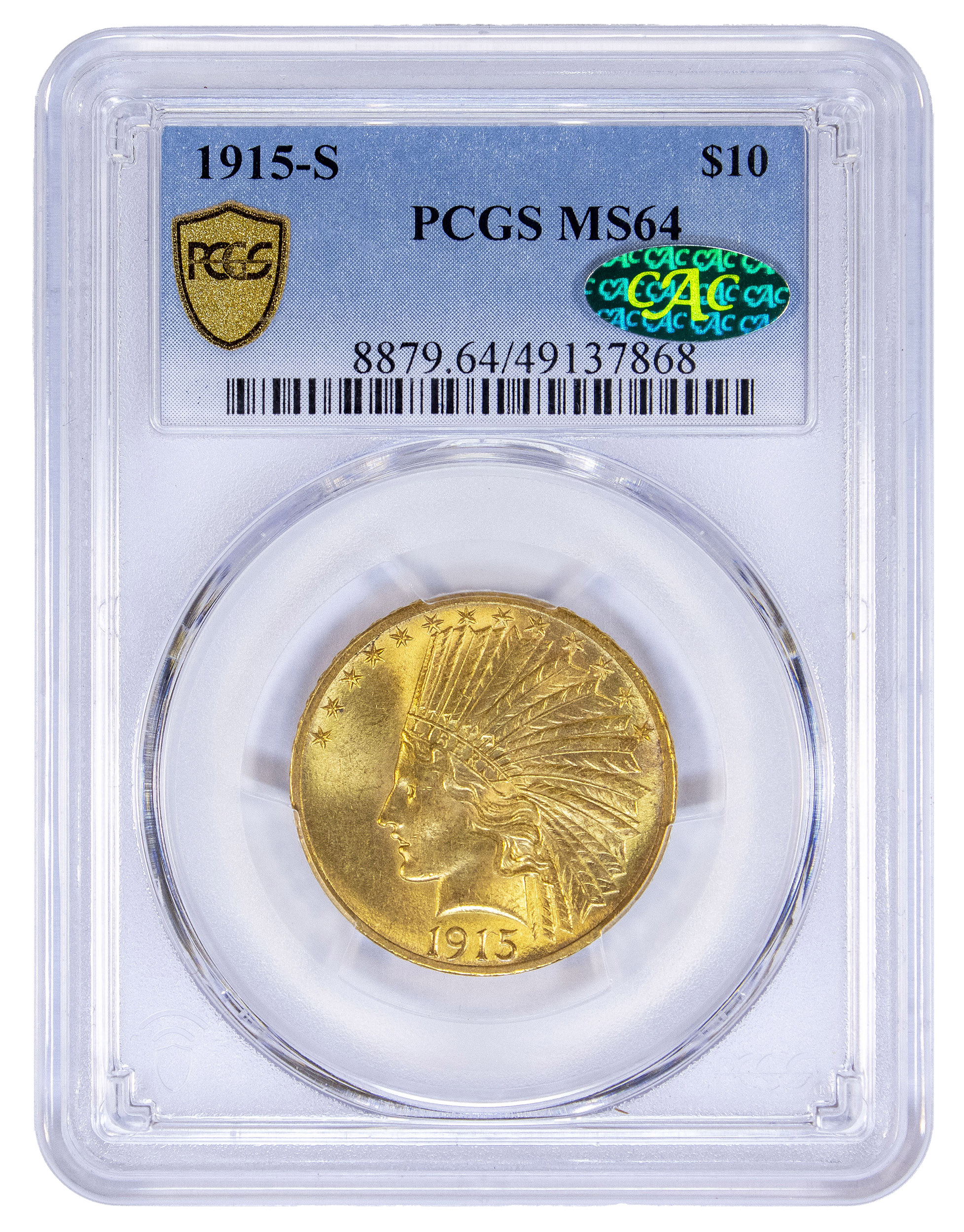 PCGS MS-64 CAC 1915-S Gold $10 Indian