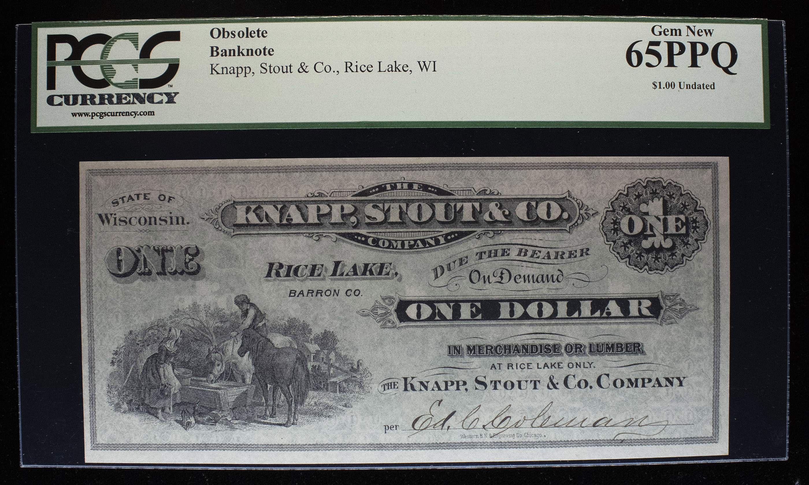 Wisconsin. Rice Lake. PCGS Gem-65 PPQ Merchant $1