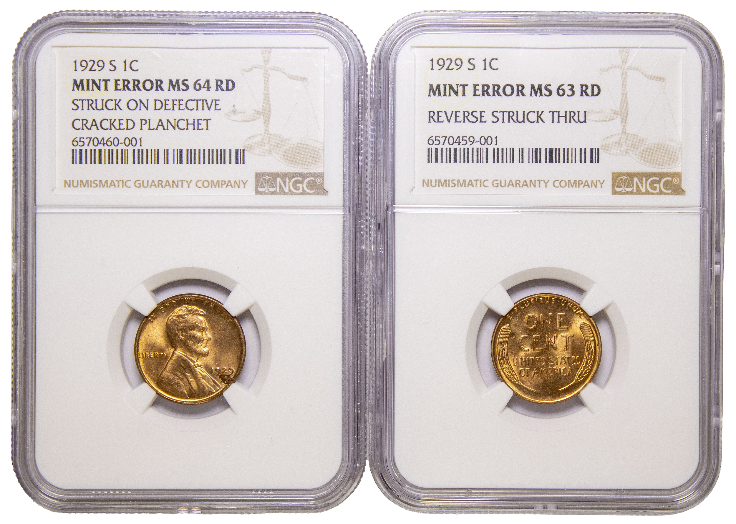 Pair Of NGC Certified 1929-S Error Lincoln Cents