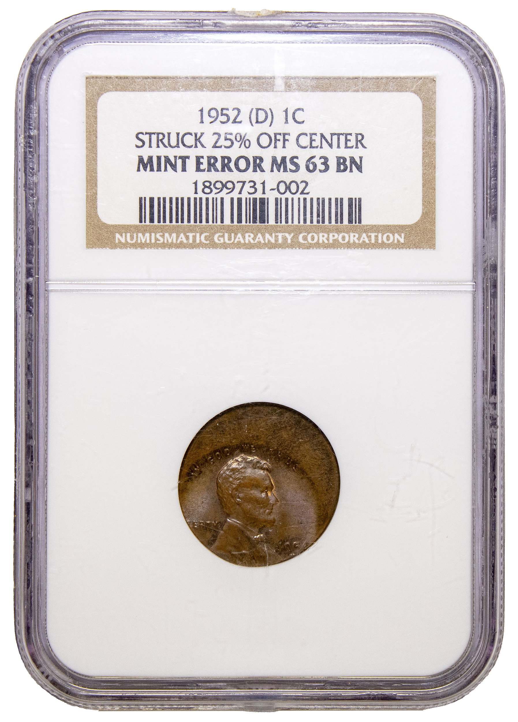NGC MS-63 BN 1952-D Off Center Lincoln Cent
