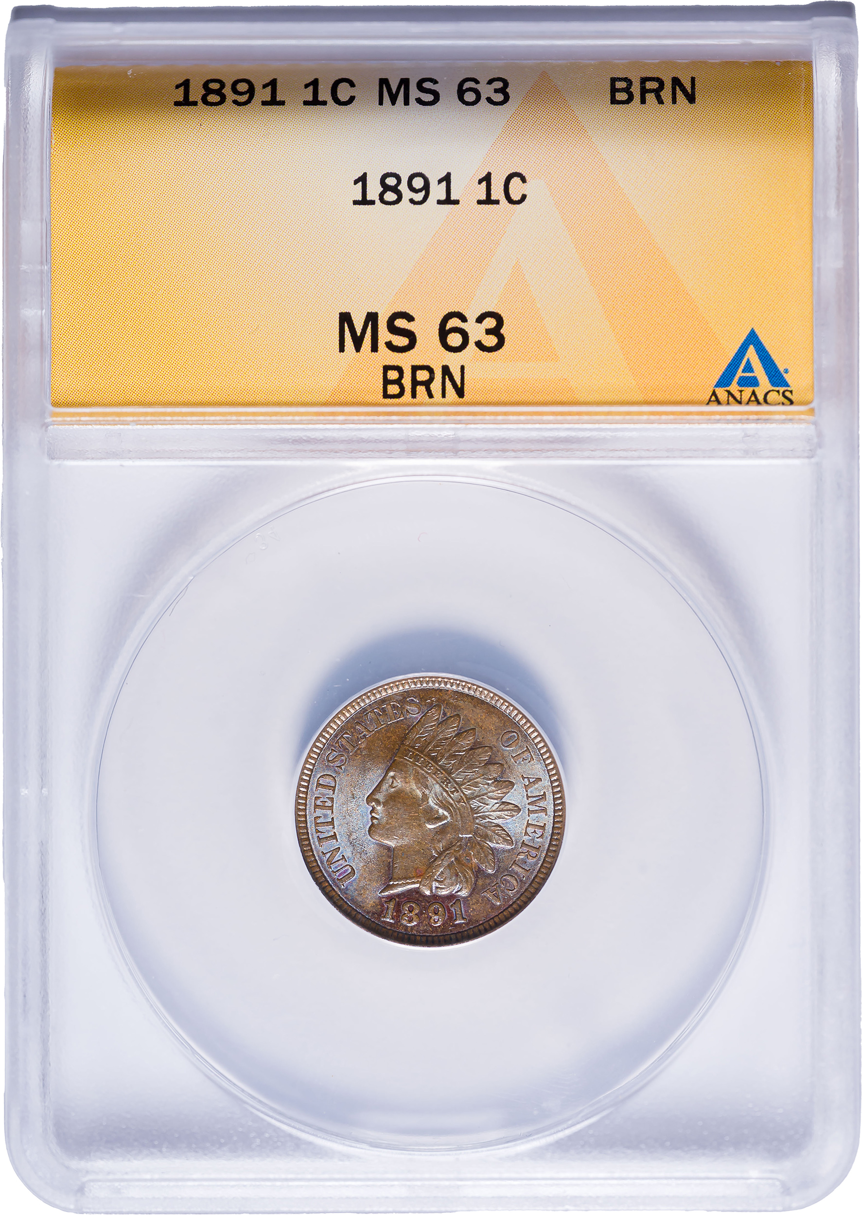 ANACS MS-63 BN 1891 Indian Cent