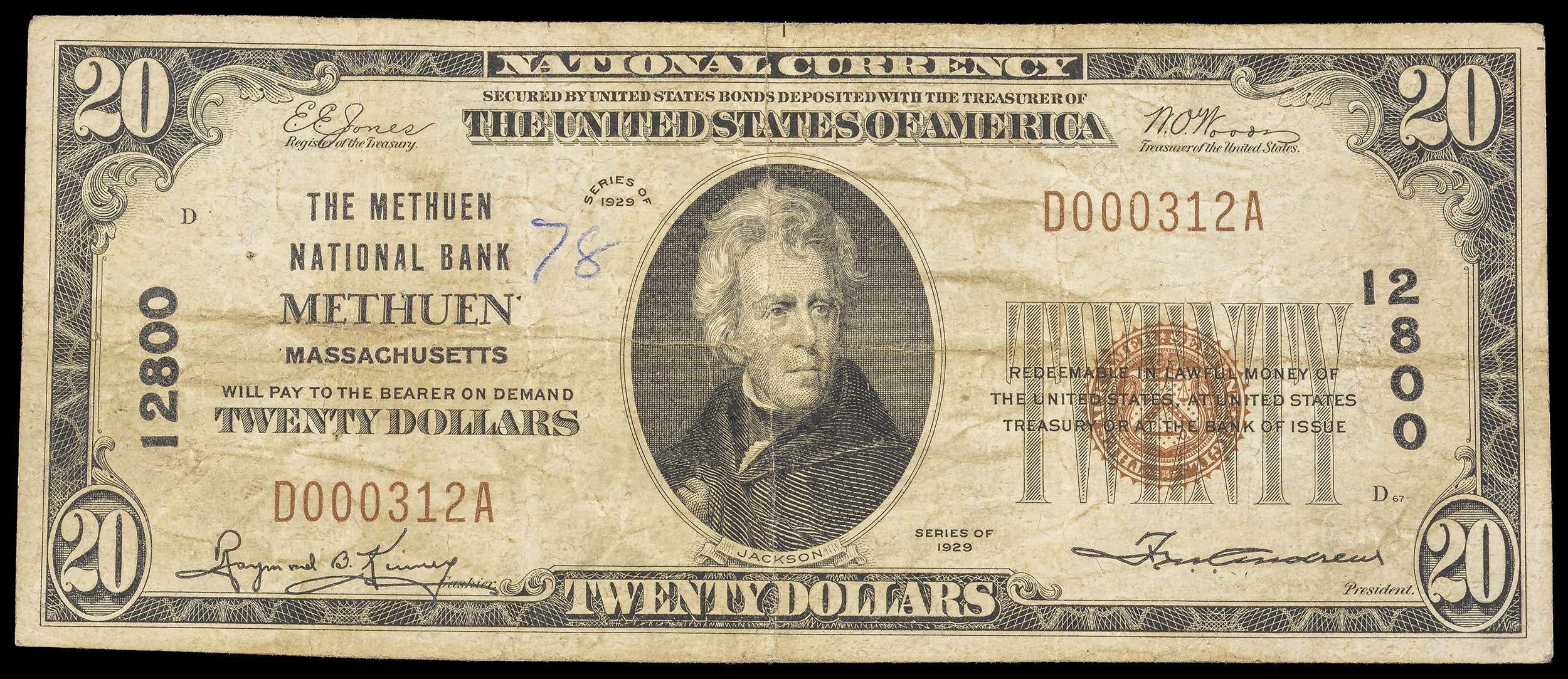 VF 1929 Methuen MA $20 National