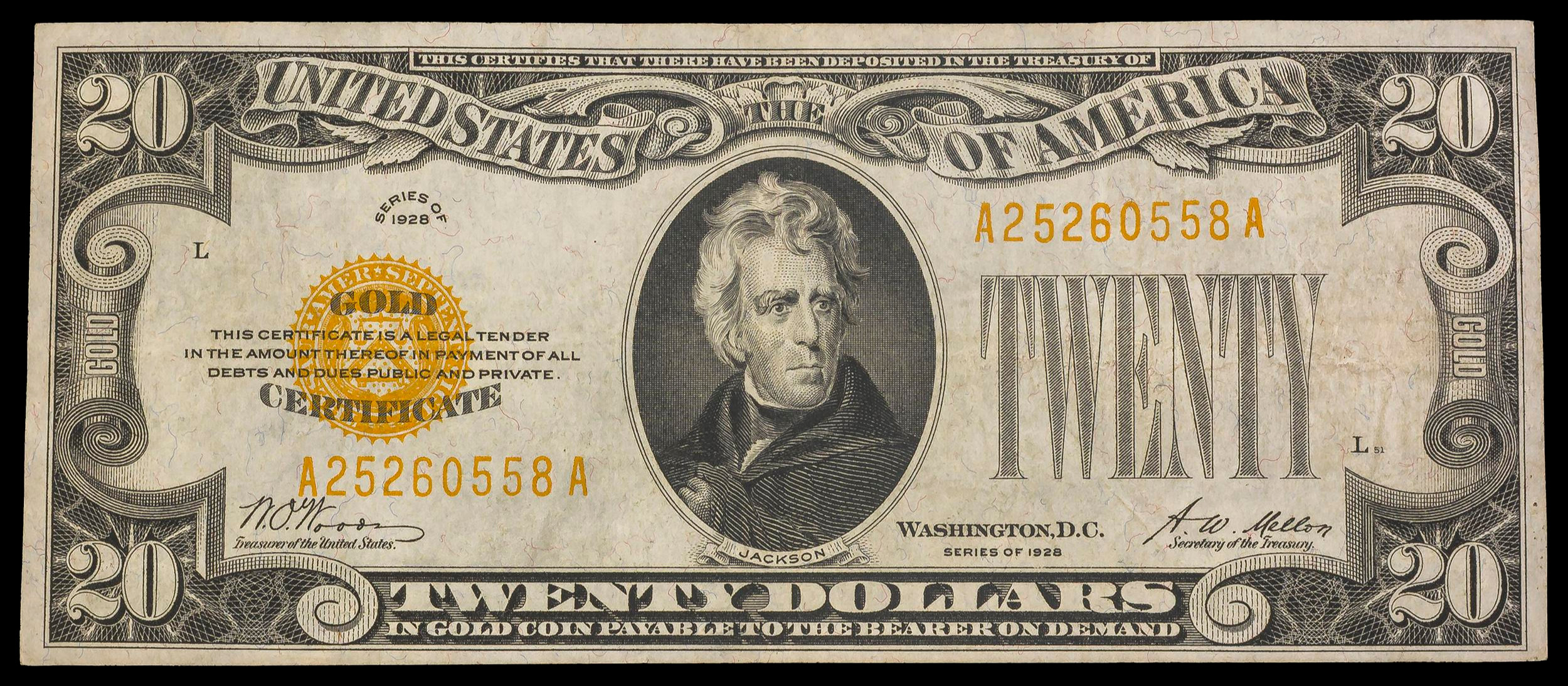 EF/AU 1928 $20 Gold Certificate