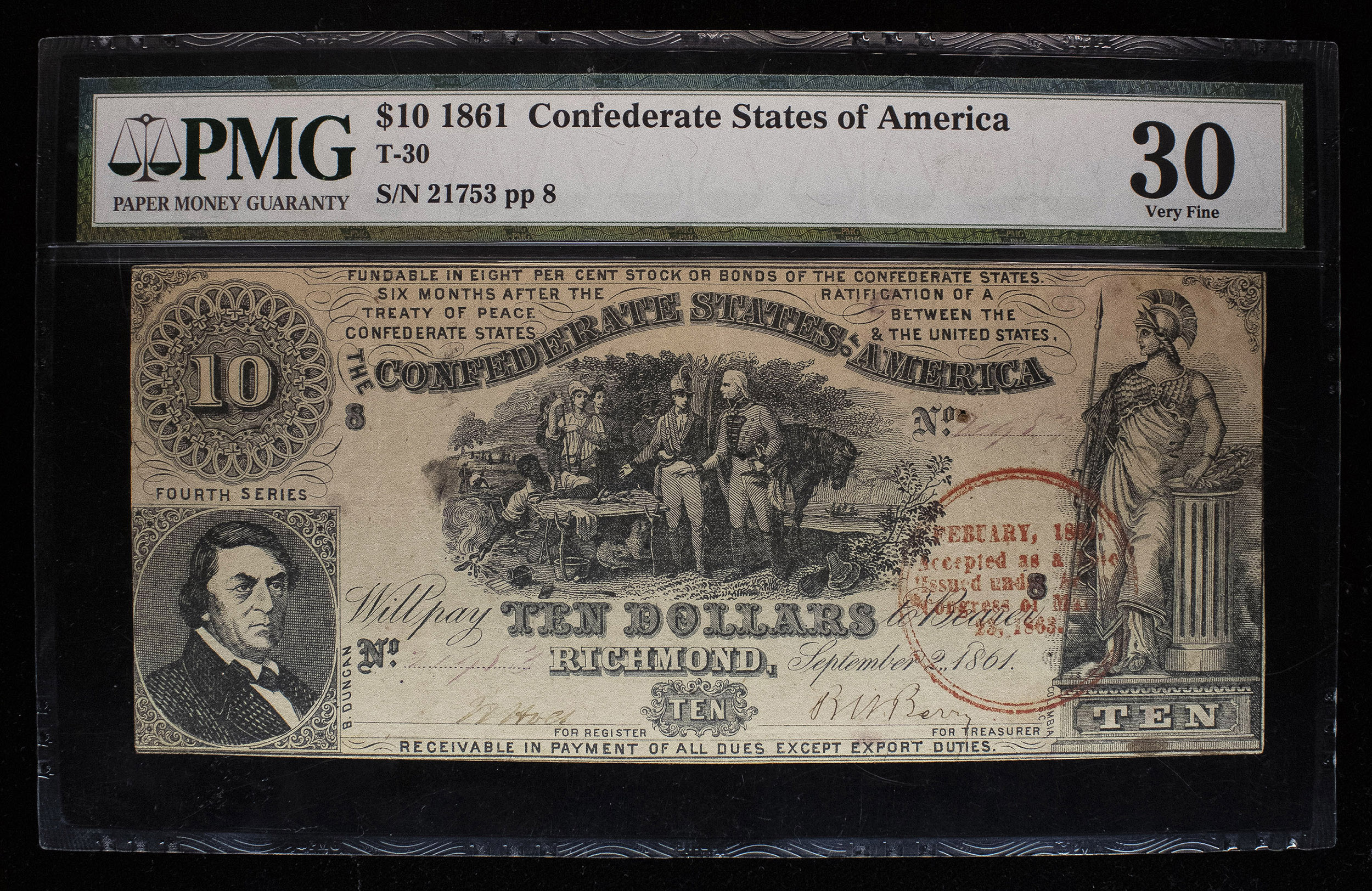 Confederate. PMG VF-30 1861 $10 Note