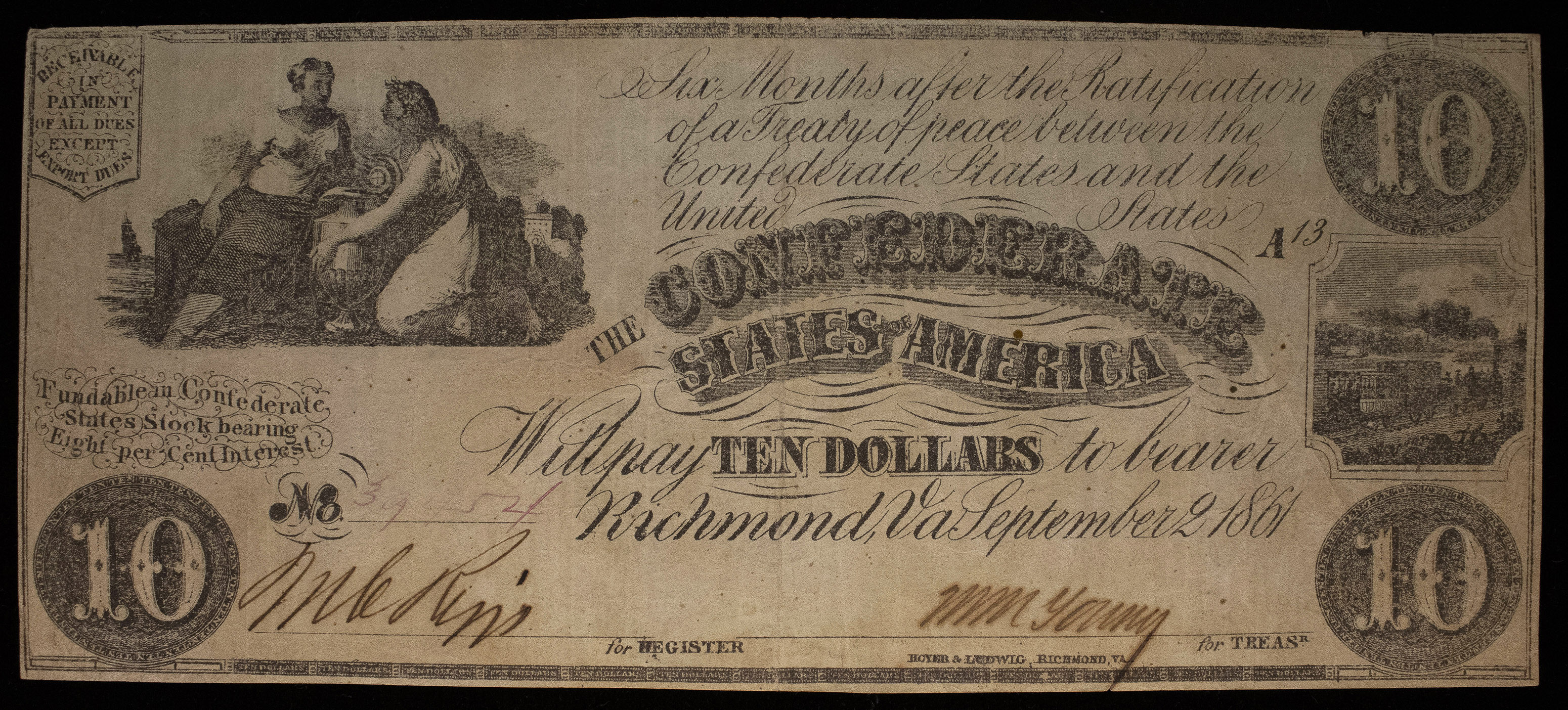 Confederate. VF 1861 $10 Note