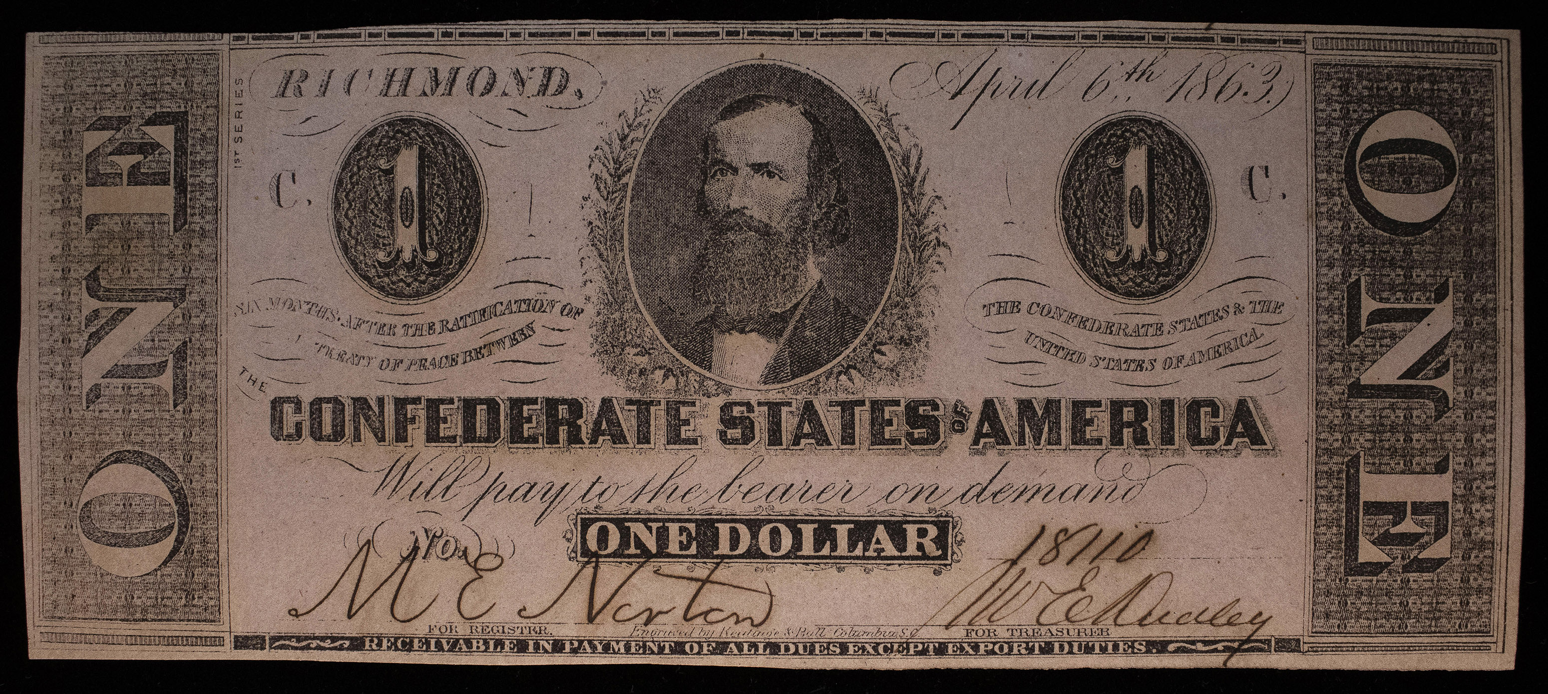 Confederate. Crisp New 1863 $1 Note