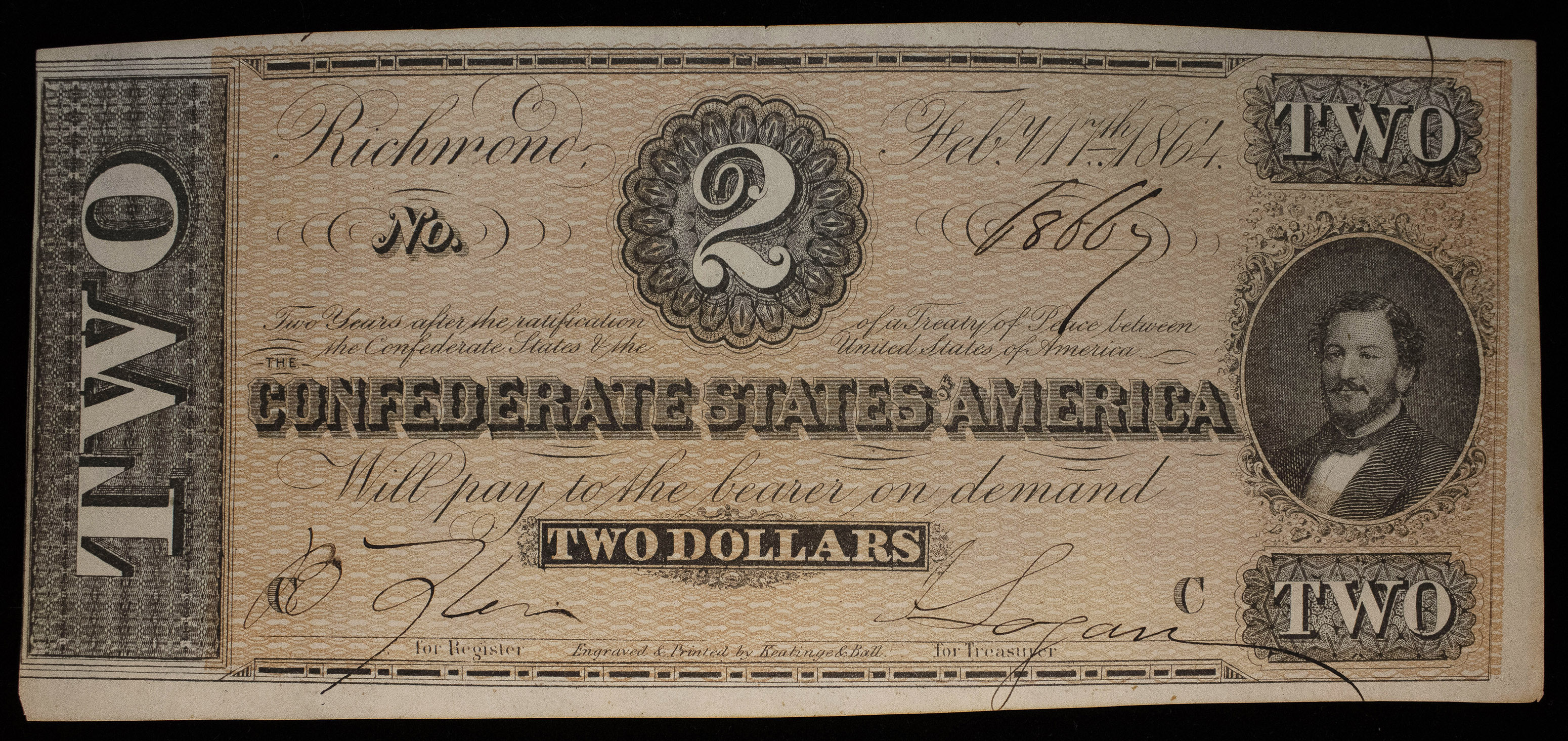 Confederate. Crisp New 1864 $2 Note
