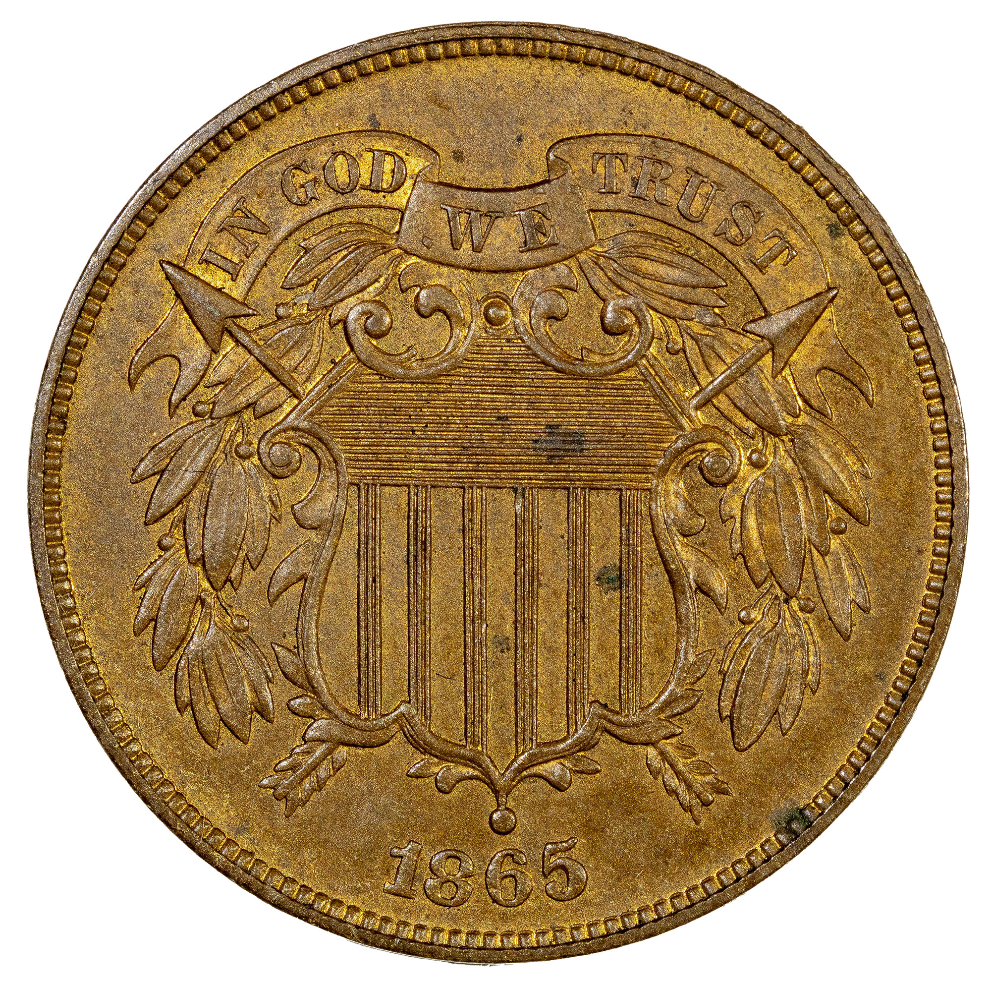 Proof 1865 Two Cents With Counterstamp