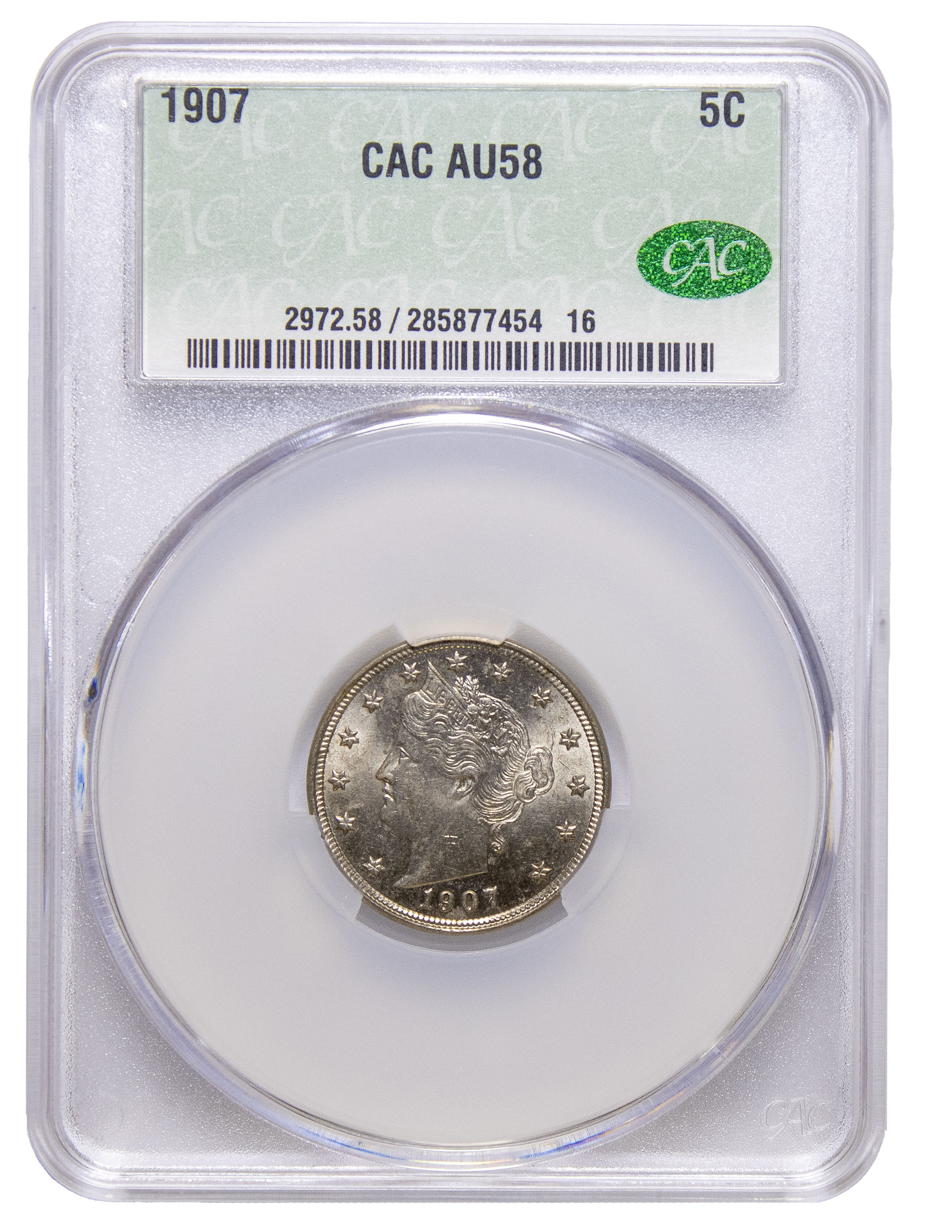 CACG AU-58 1907 Liberty Nickel
