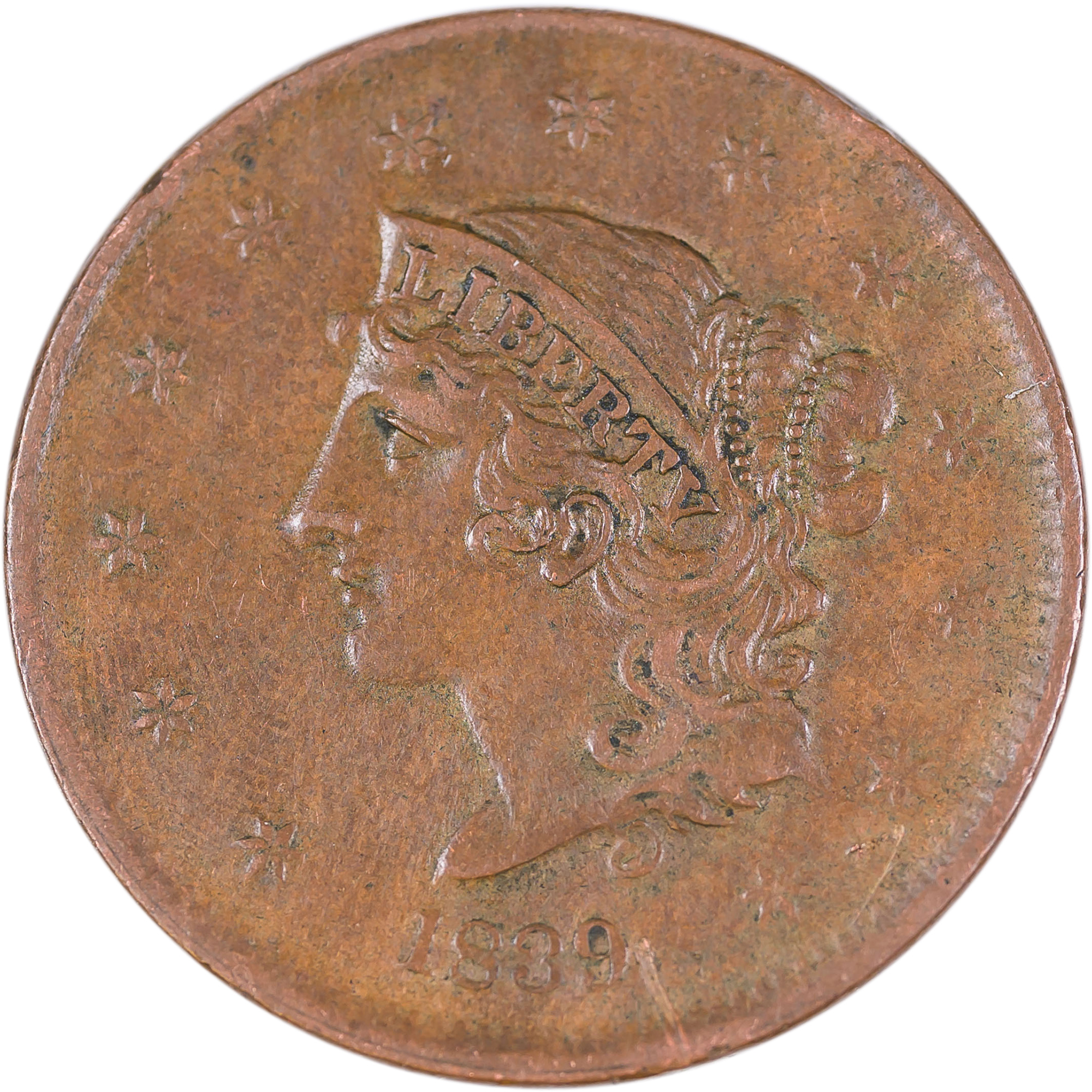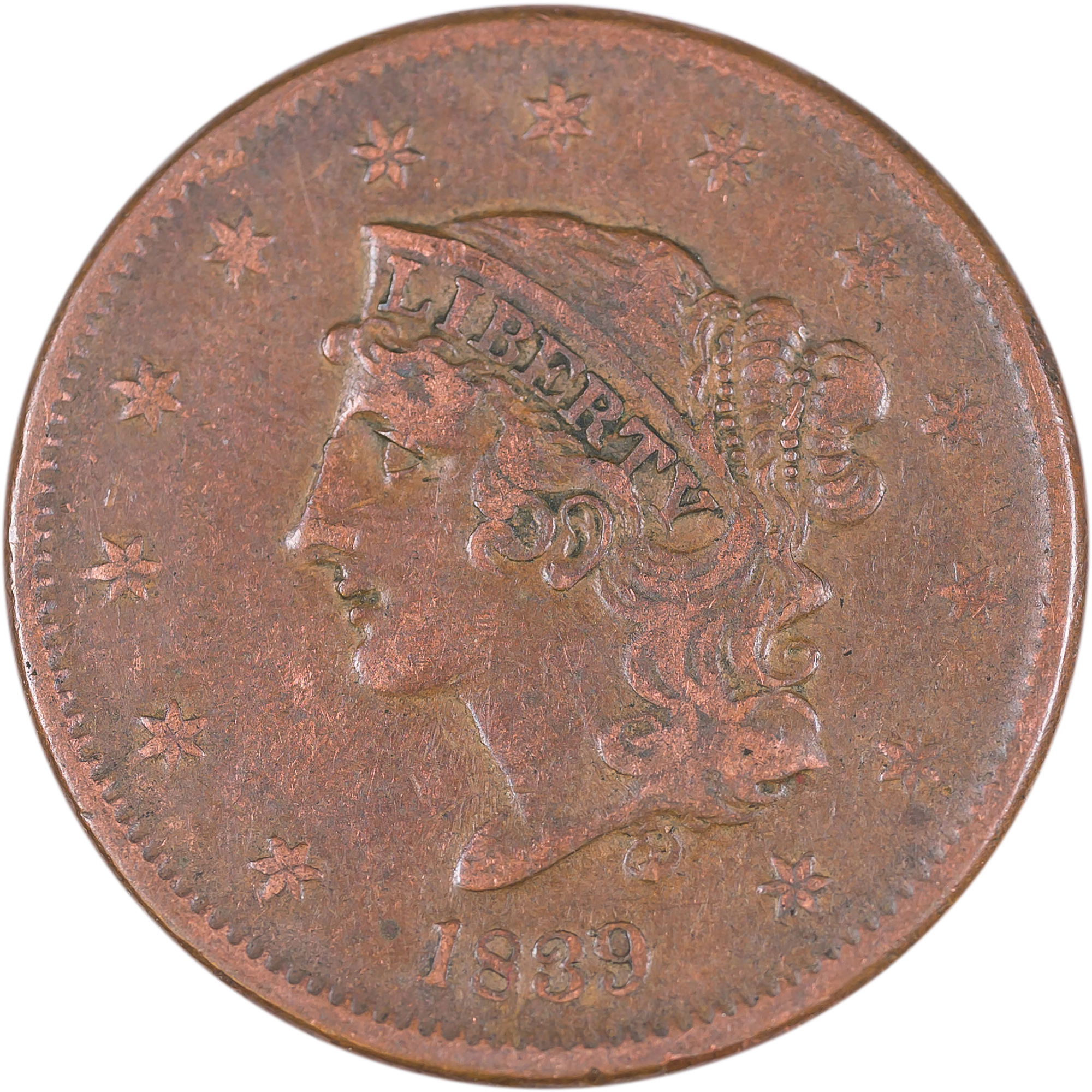 VF-35 1839 Booby Head Cent