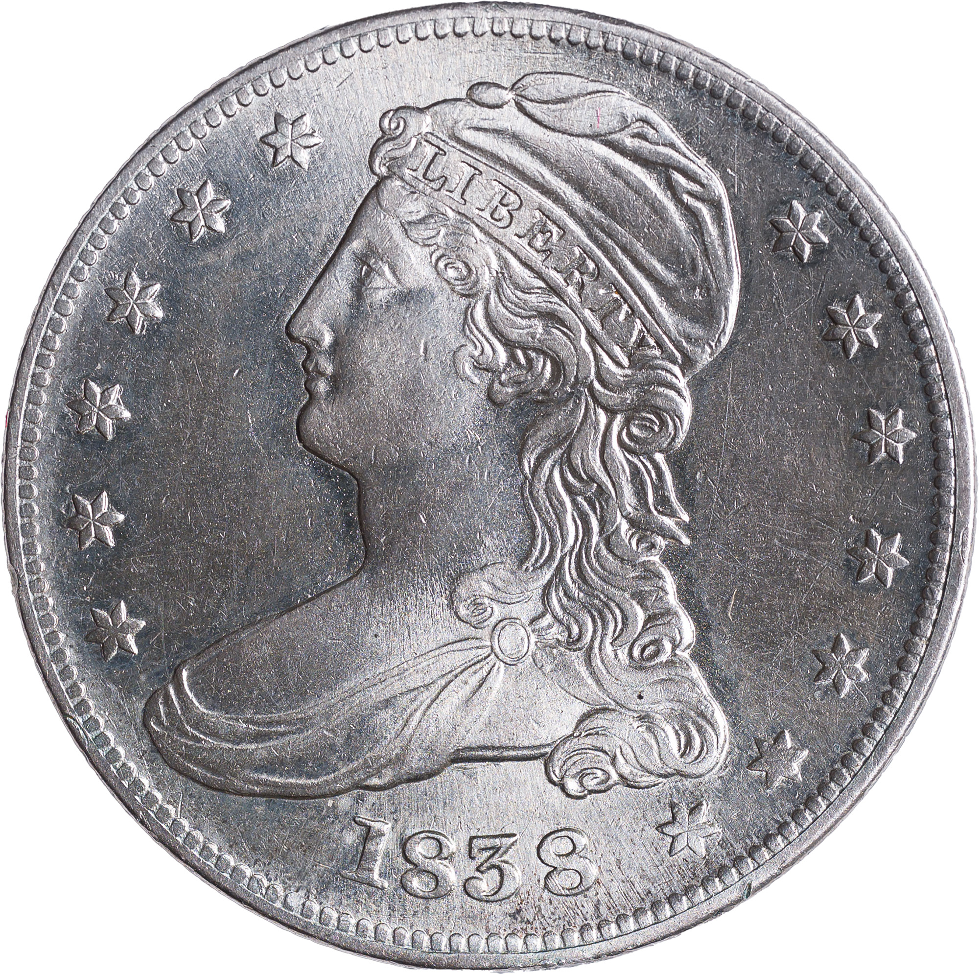 AU-58 Details 1838 Reeded Edge Half Dollar