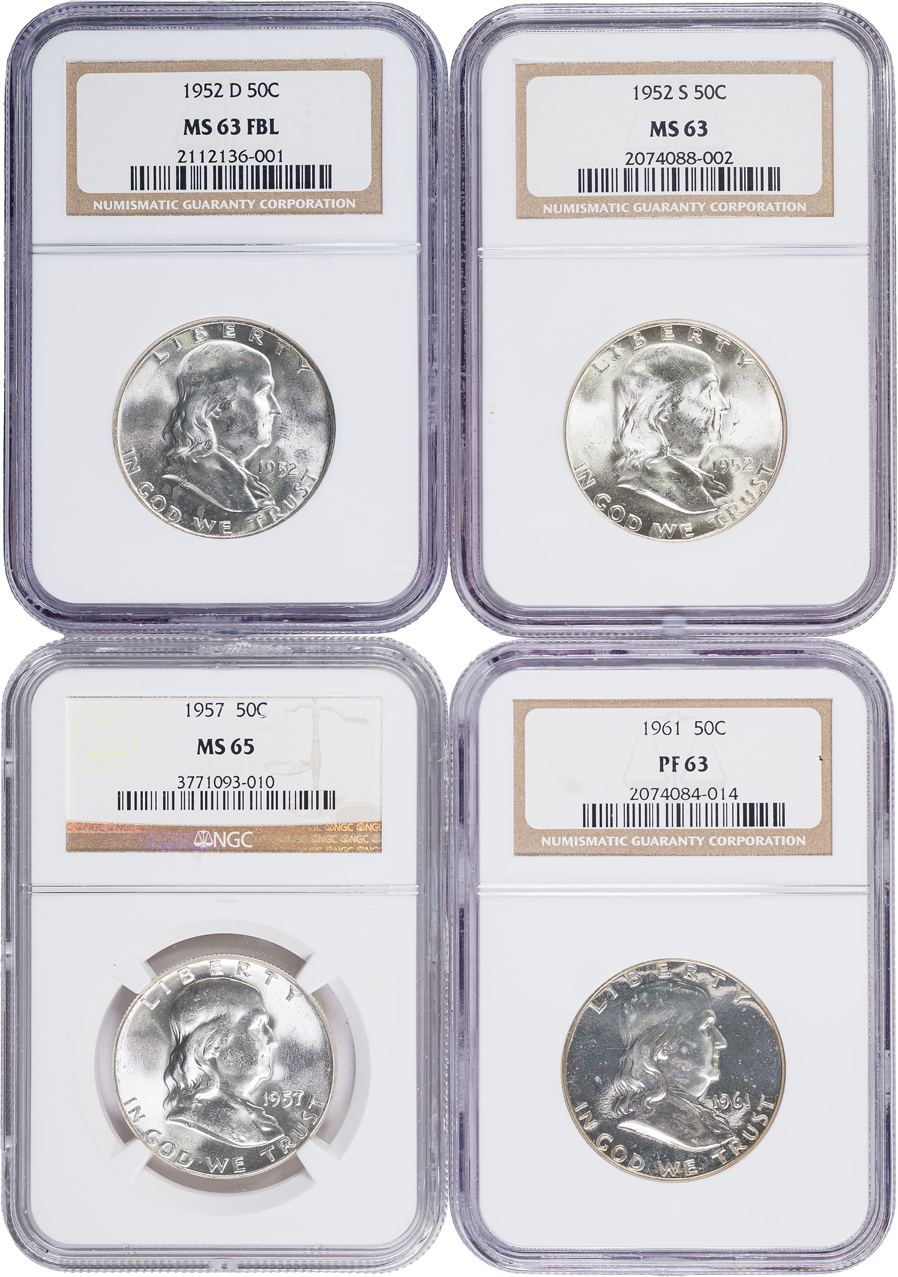 Four NGC-Certified Franklin Half Dollars
