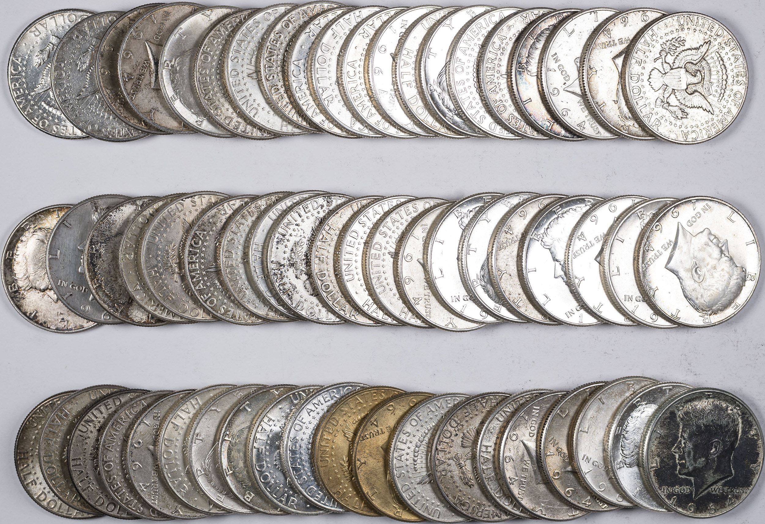 3 Rolls of 1964 Kennedy Half Dollars