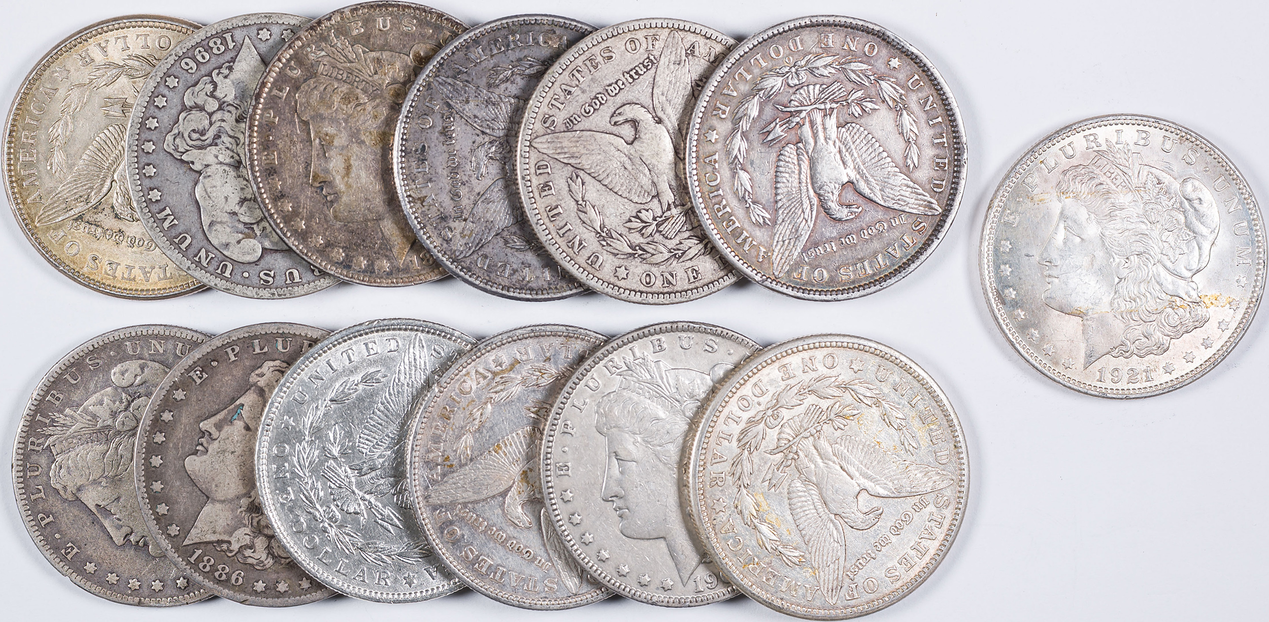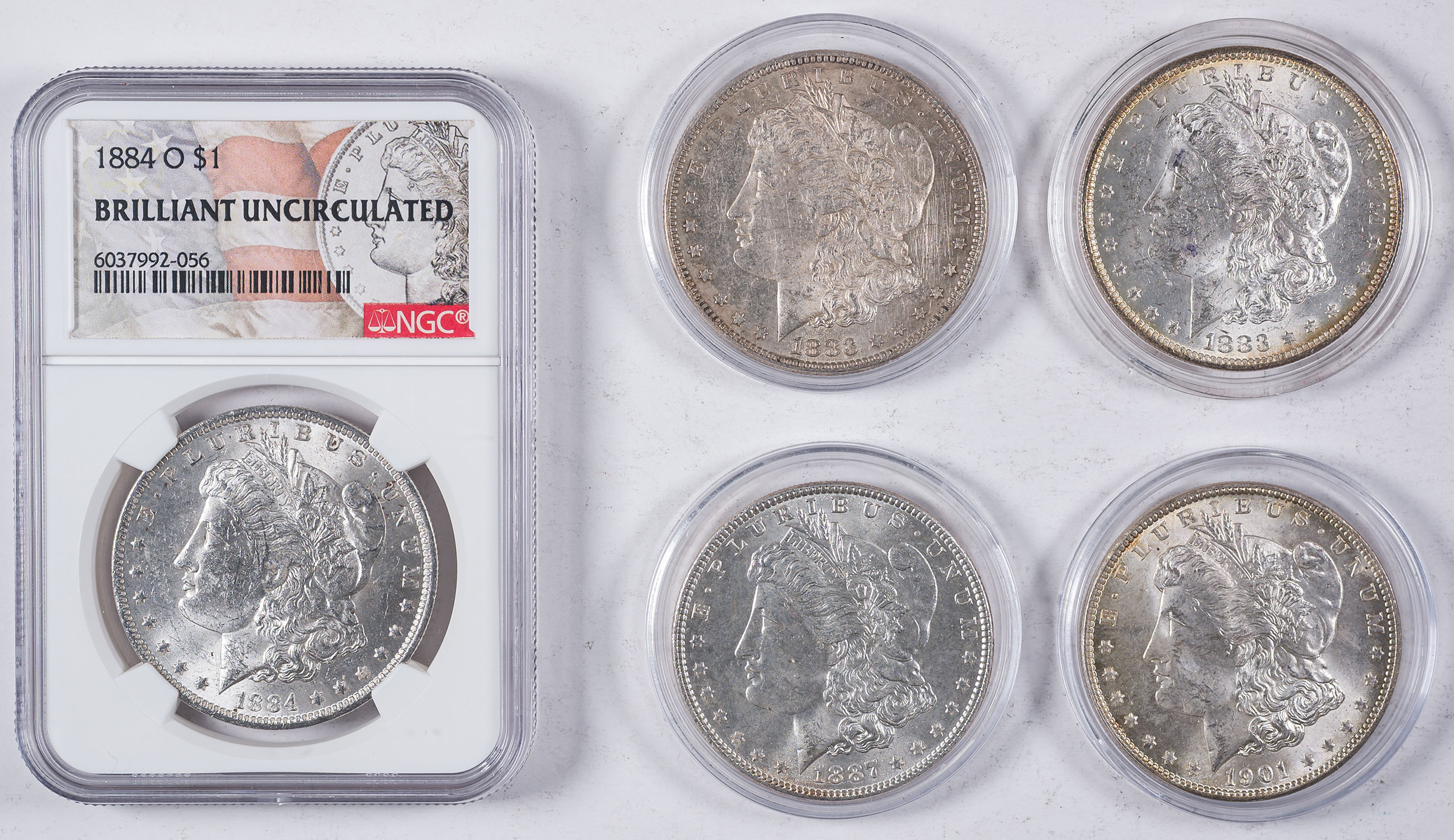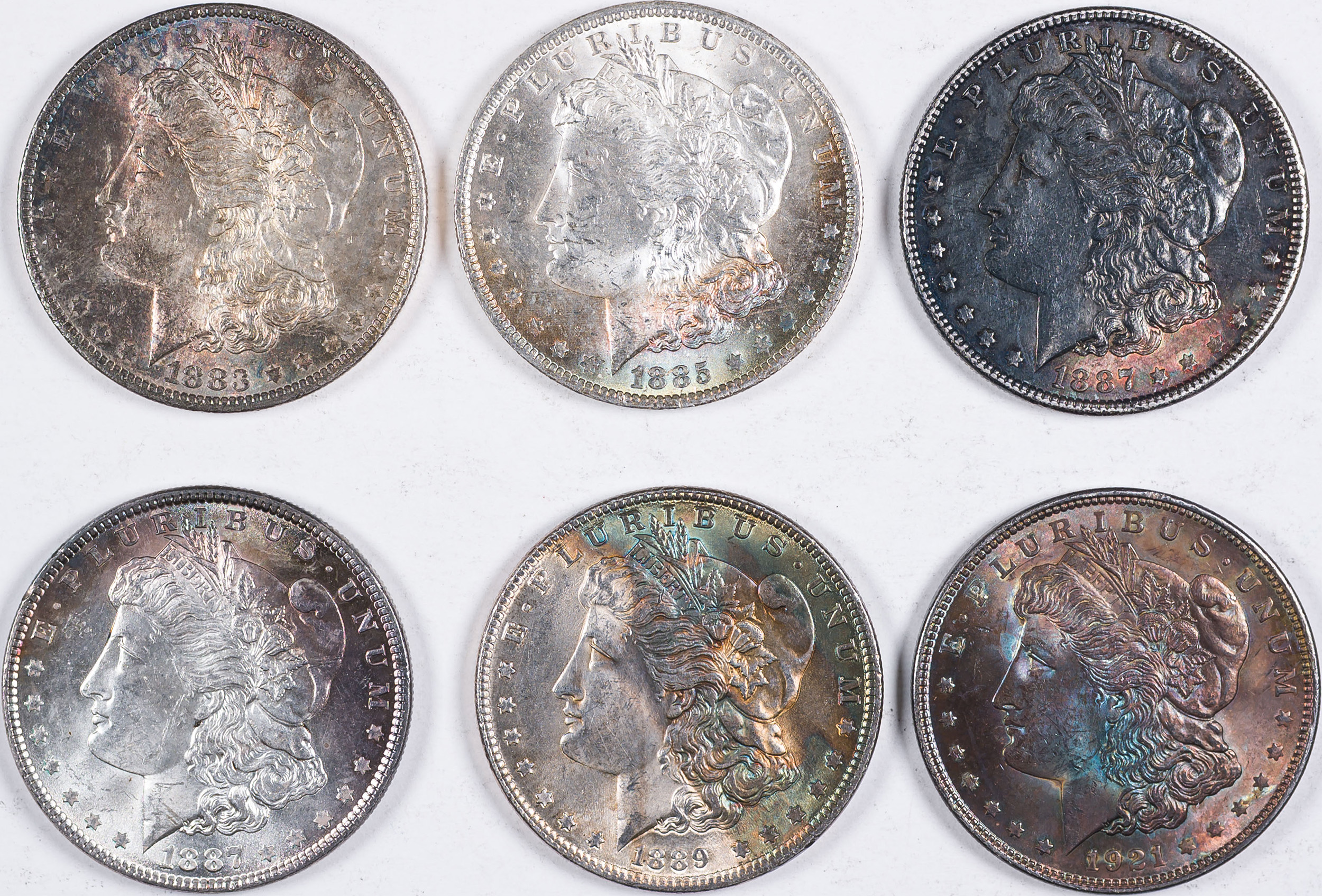 Eight Different MS-60 to MS-62 Morgan Dollars
