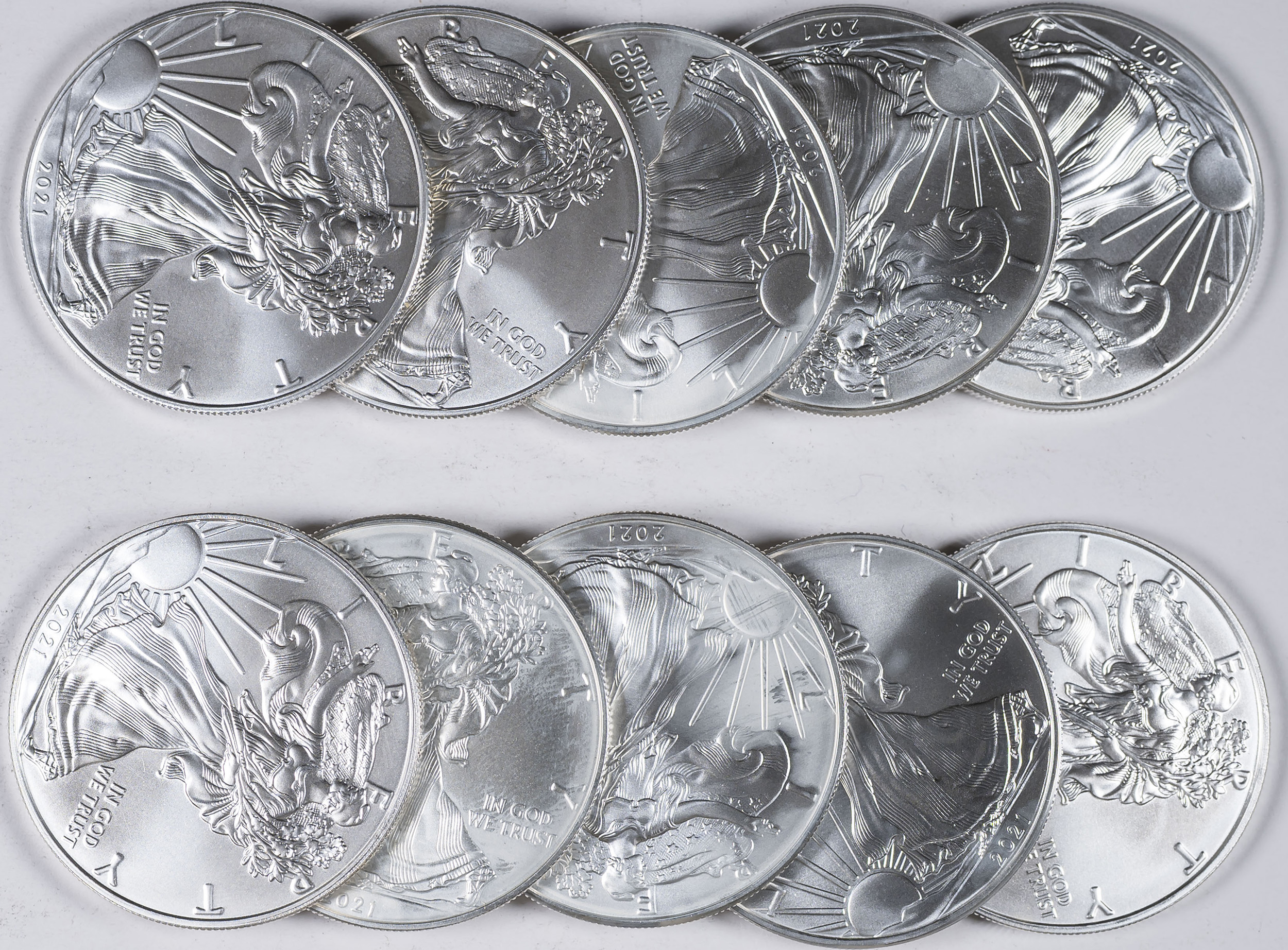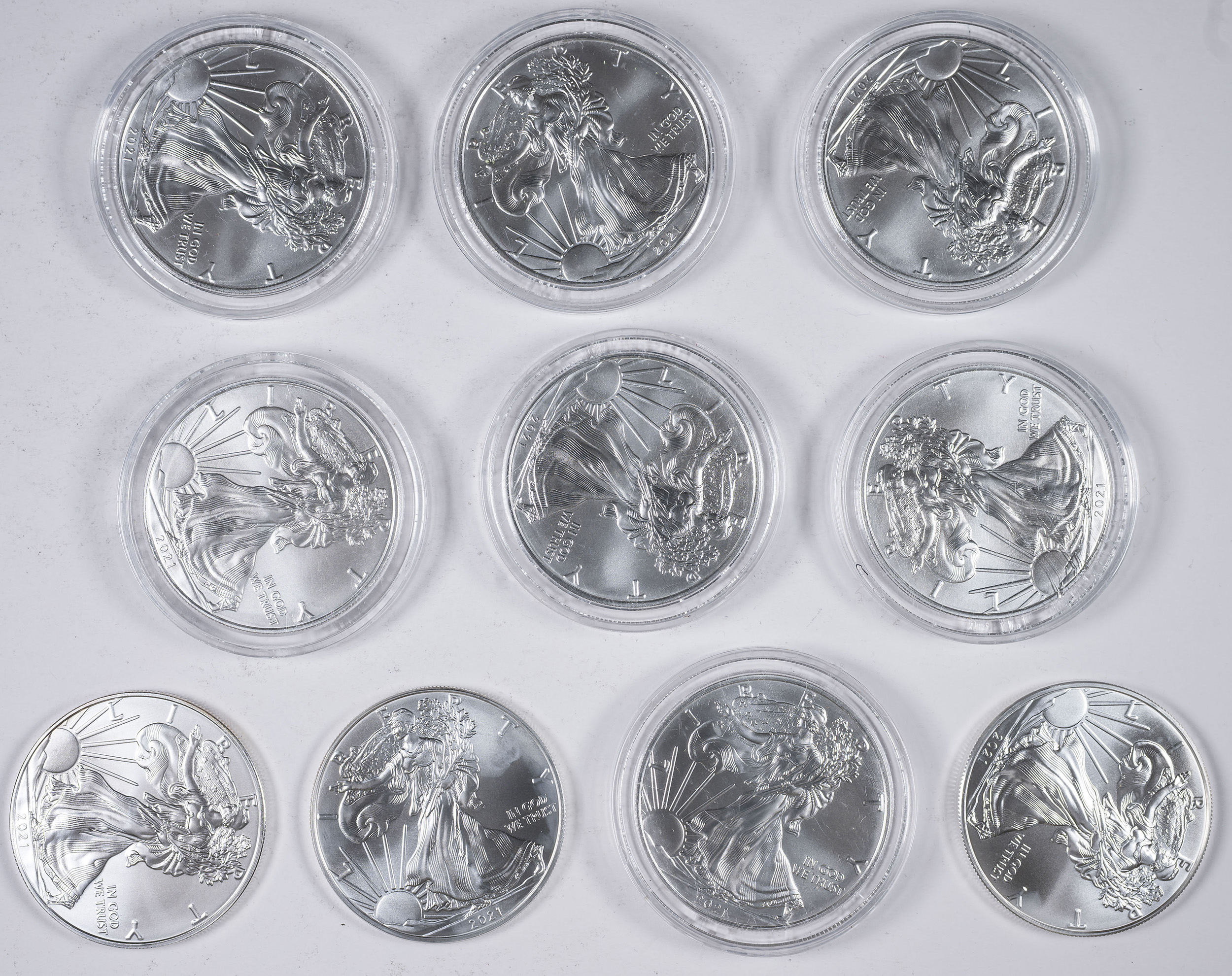 10 Pieces 2021 One Ounce Silver Eagles