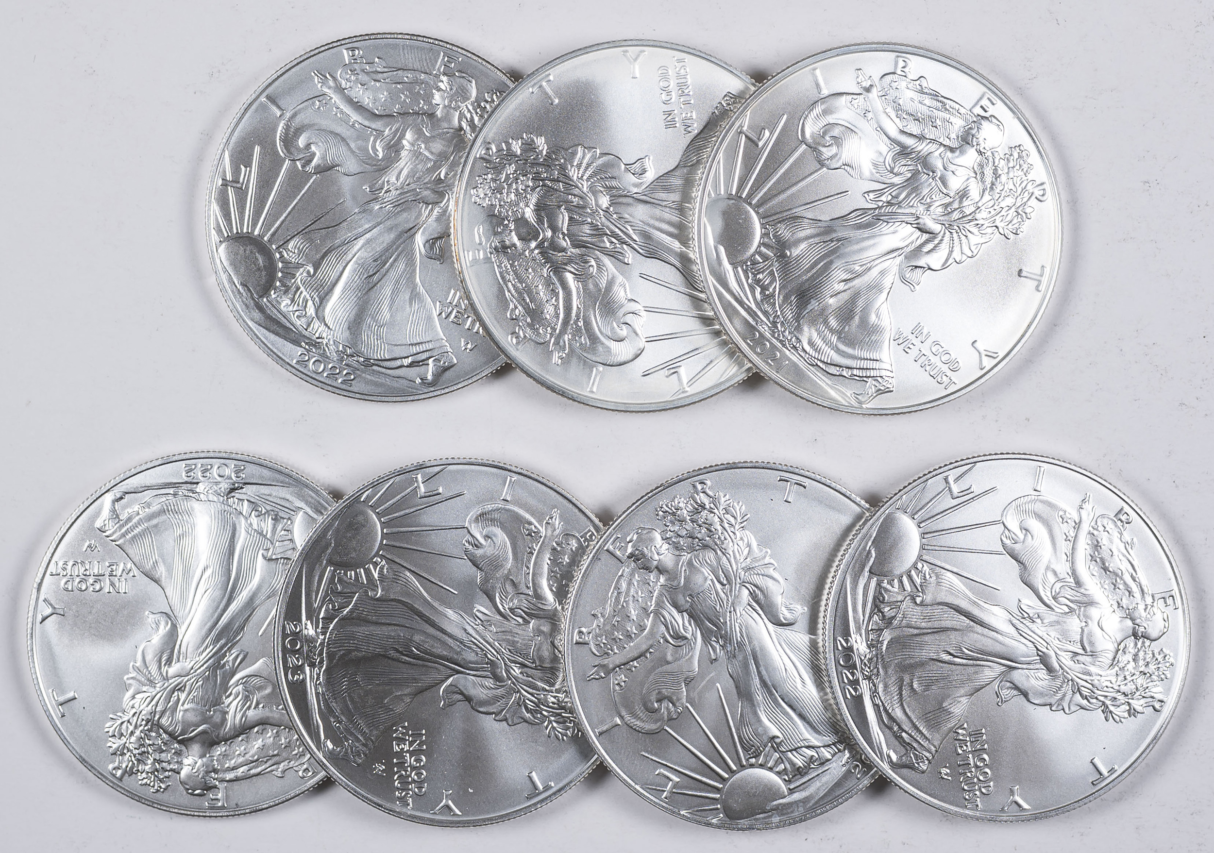7 Pieces 2021-23 One Ounce Silver Eagles