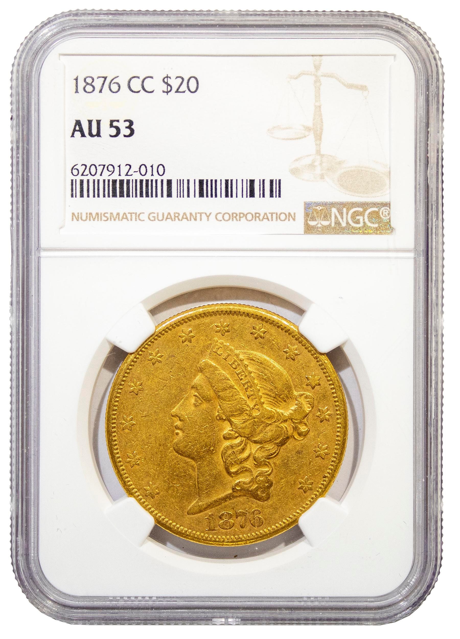 NGC AU-53 1876-CC Gold $20