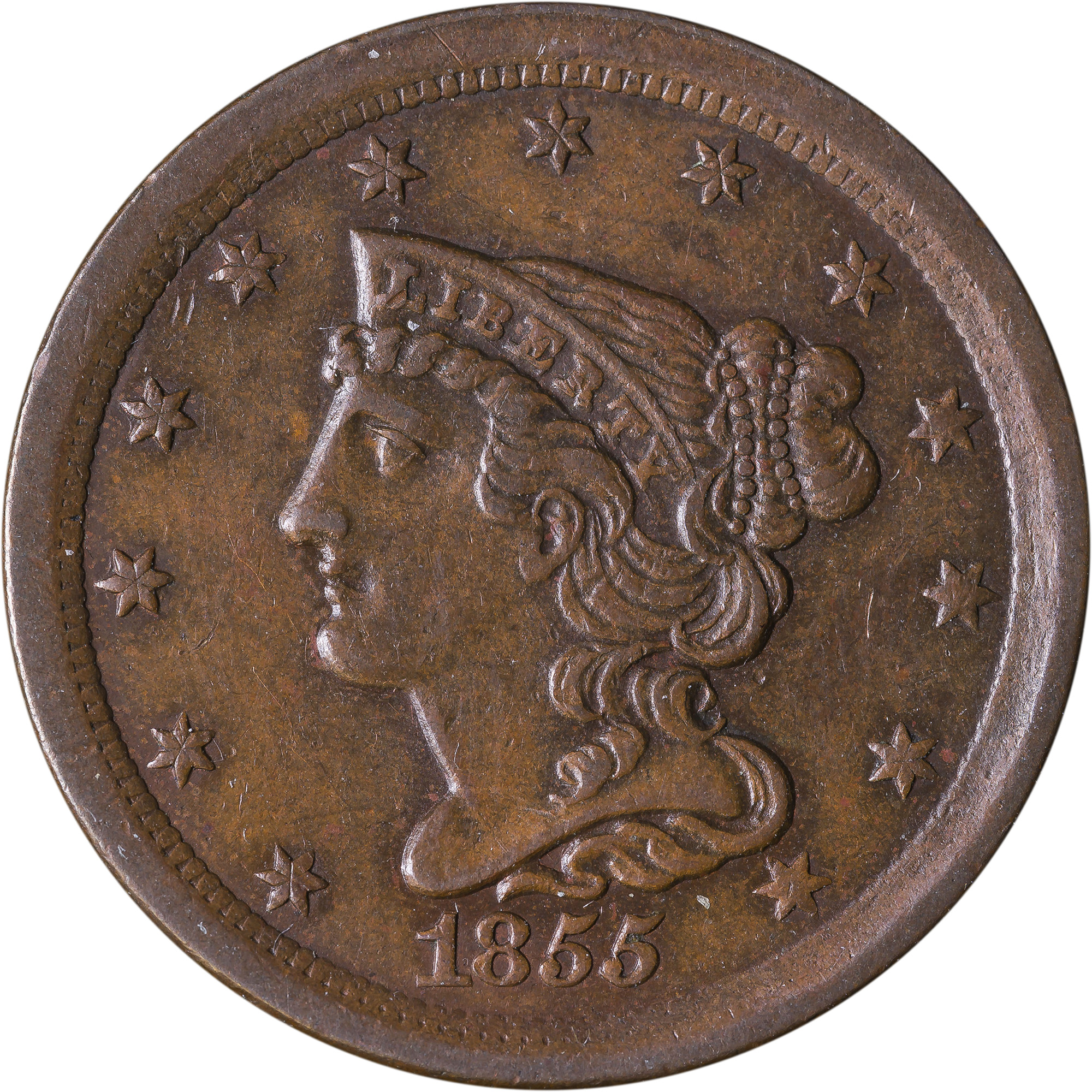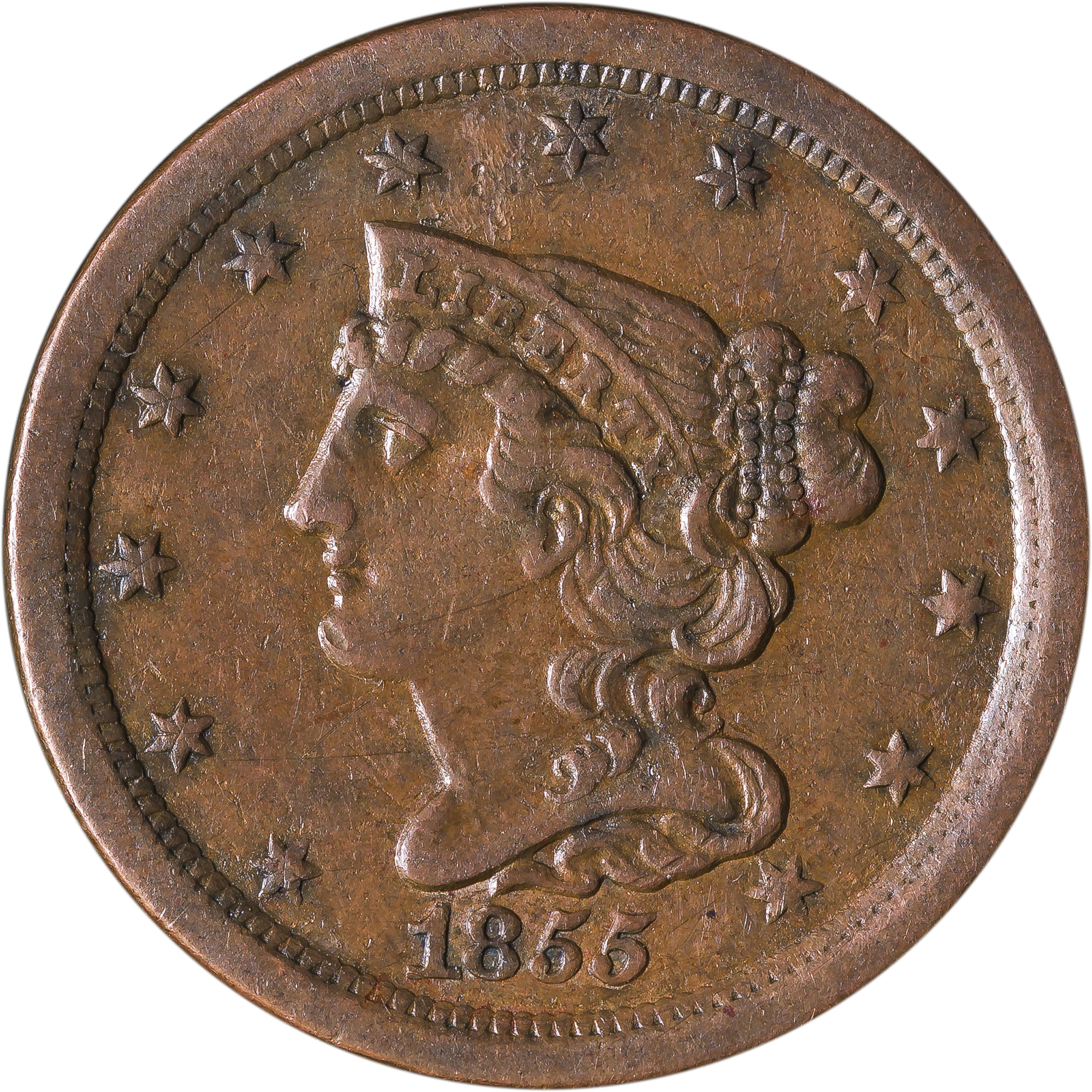 AU-50 1855 Half Cent