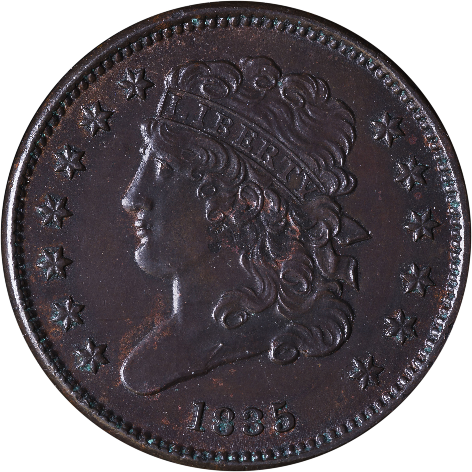 BU-60+ Details 1835 Half Cent