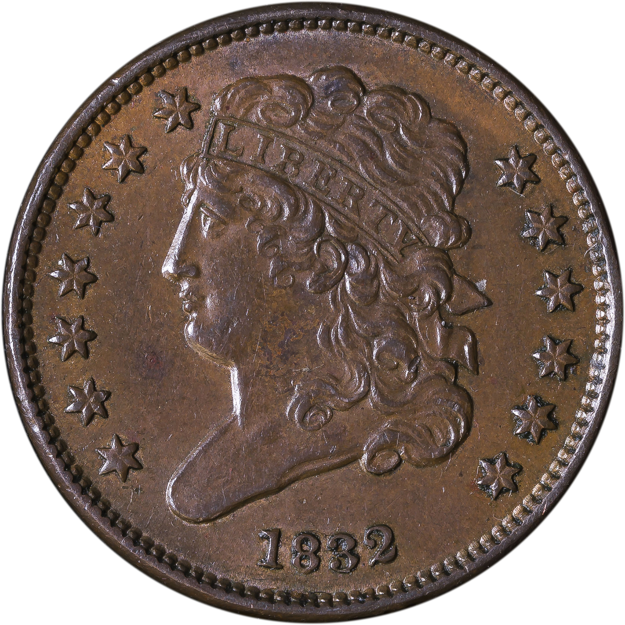 AU-58 1832 Half Cent