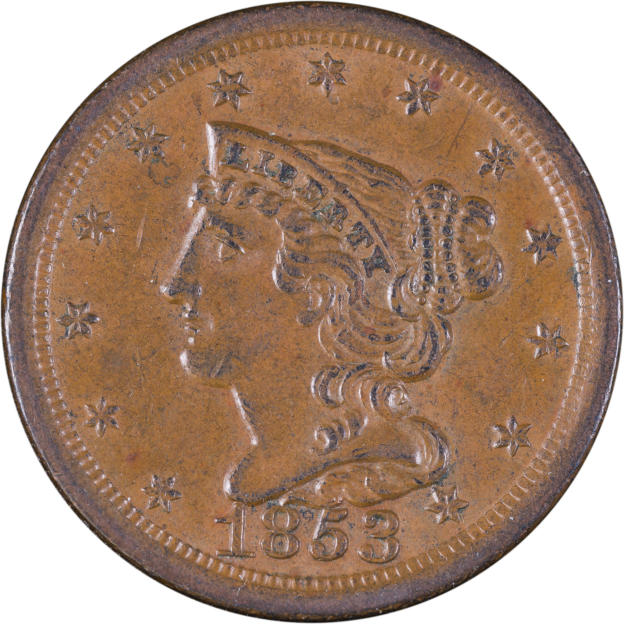 AU-58 1853 Half Cent