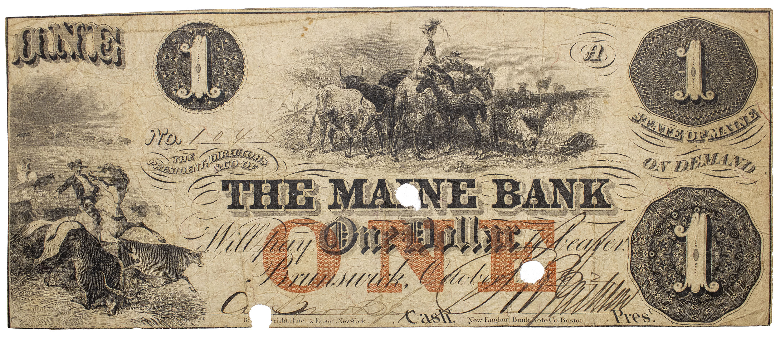 Maine. Brunswick. Fine to VF 1862 $1 Note