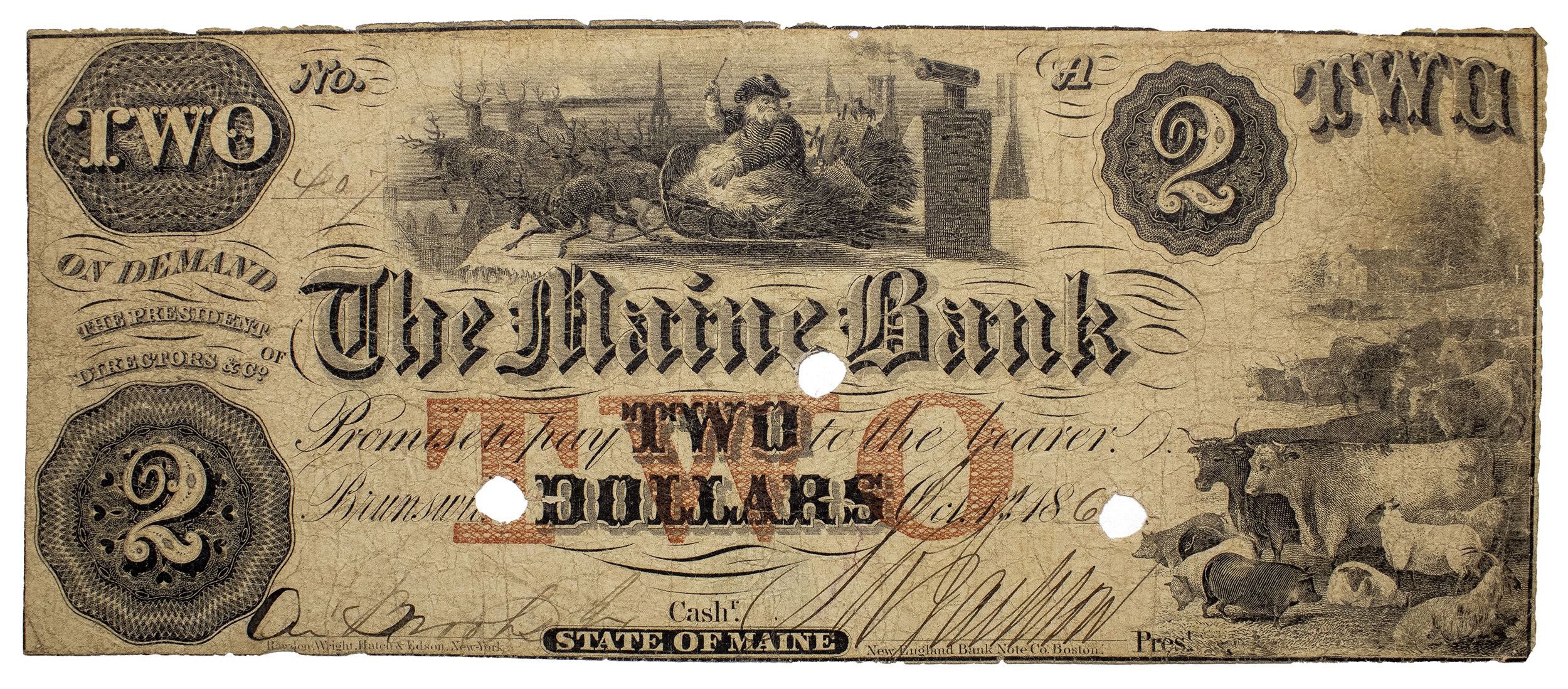 Maine. Brunswick. Fine 1862 $2 Santa Claus Note