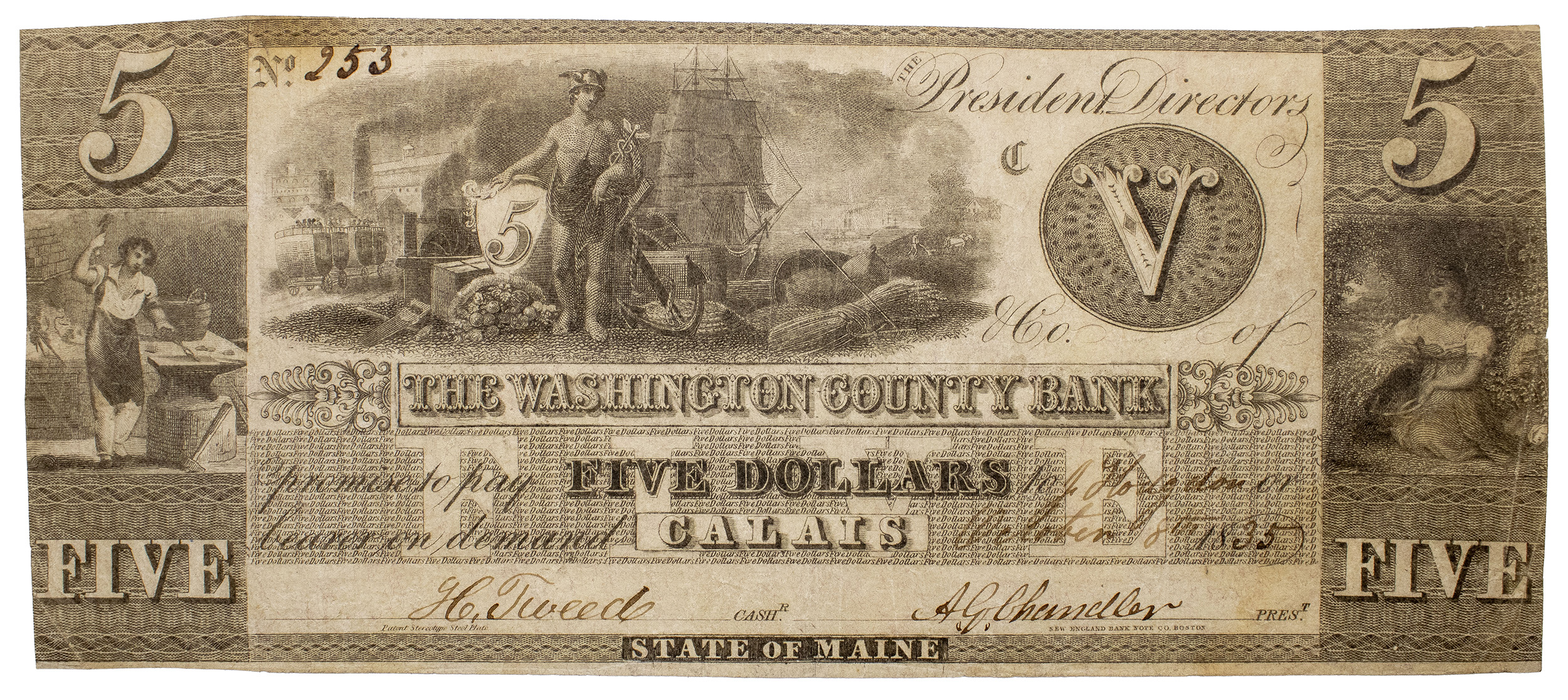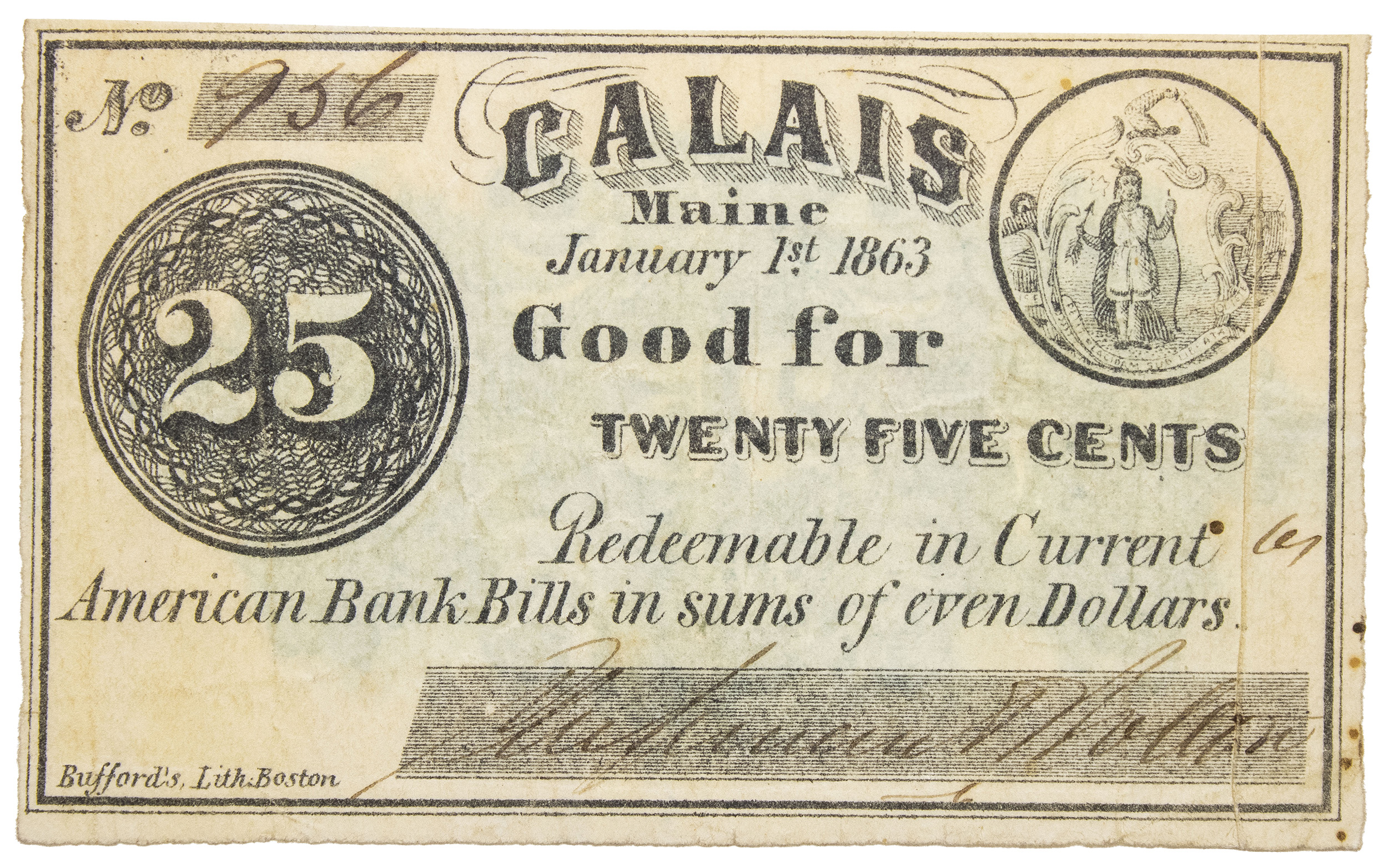 Maine. Calais. VF-EF Chipman & Bolton 25C Scrip