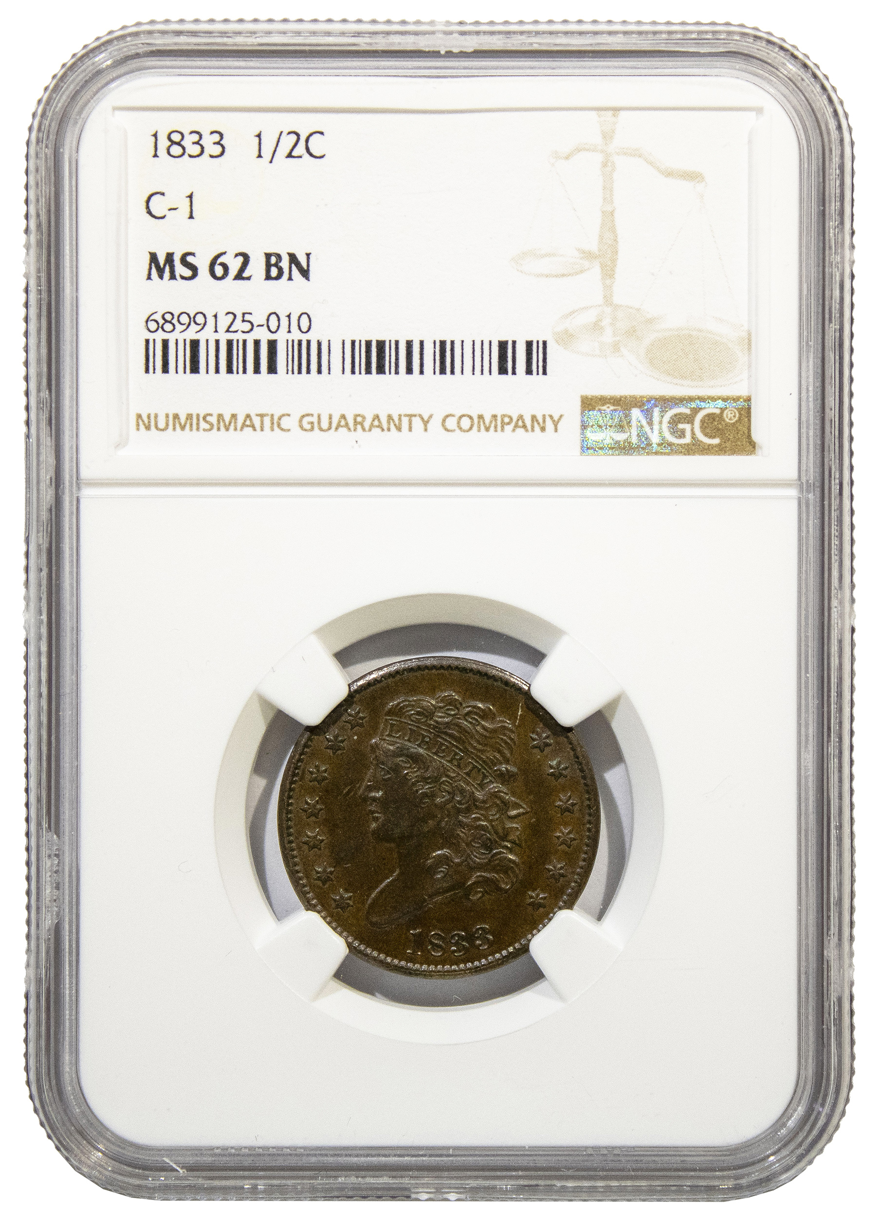 NGC MS-62 BN 1833 Half Cent