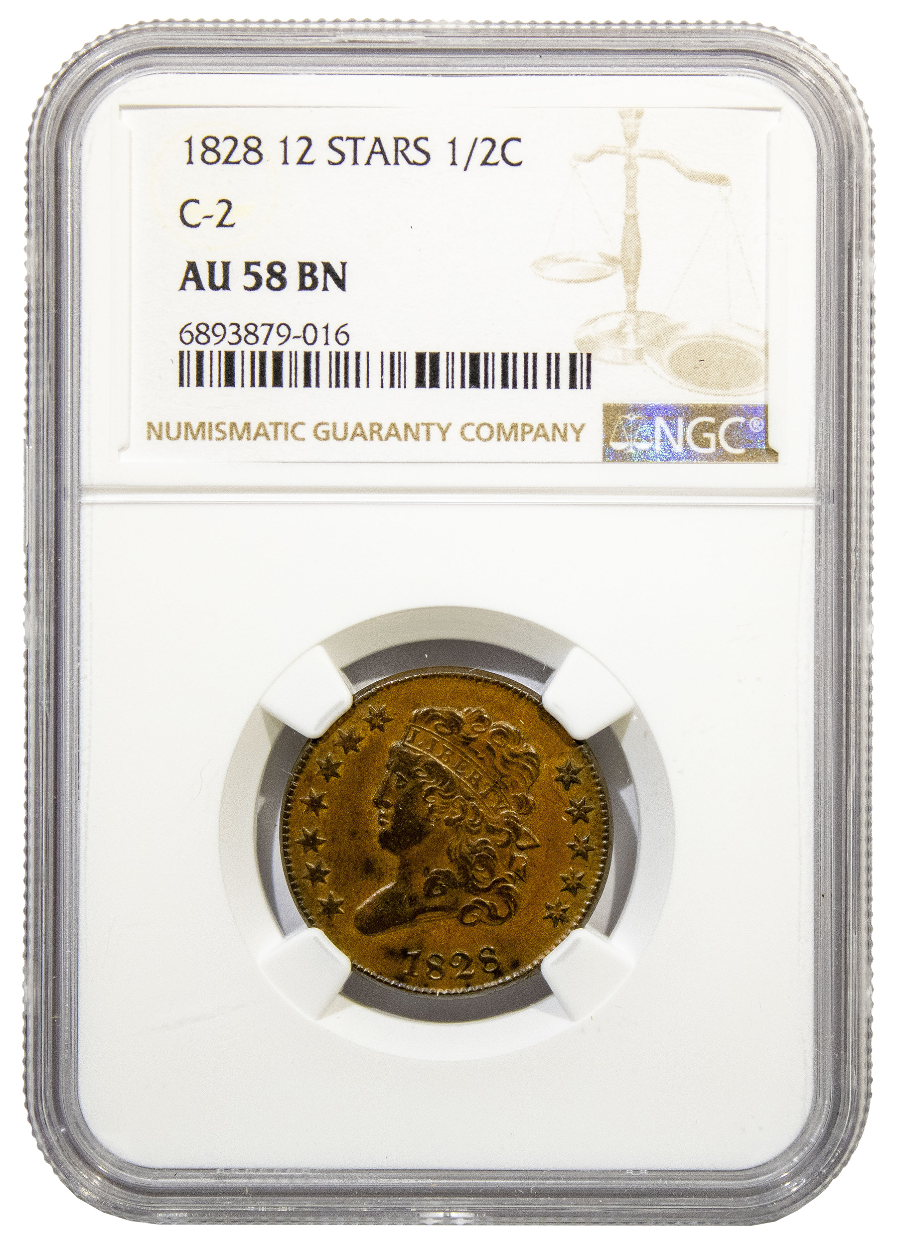 NGC AU-58 1828 12 Stars Half Cent