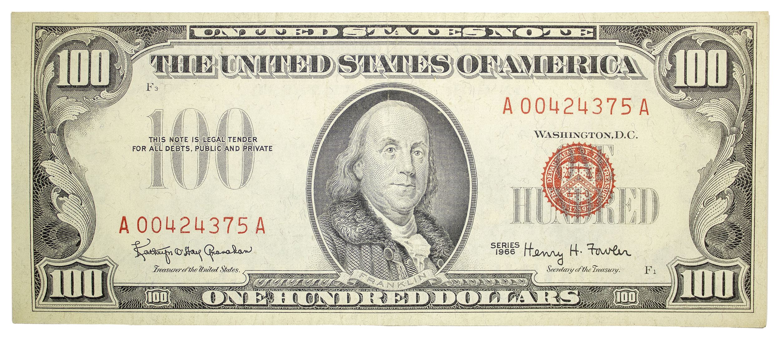AU Series 1966 Red Seal U.S. $100 Note