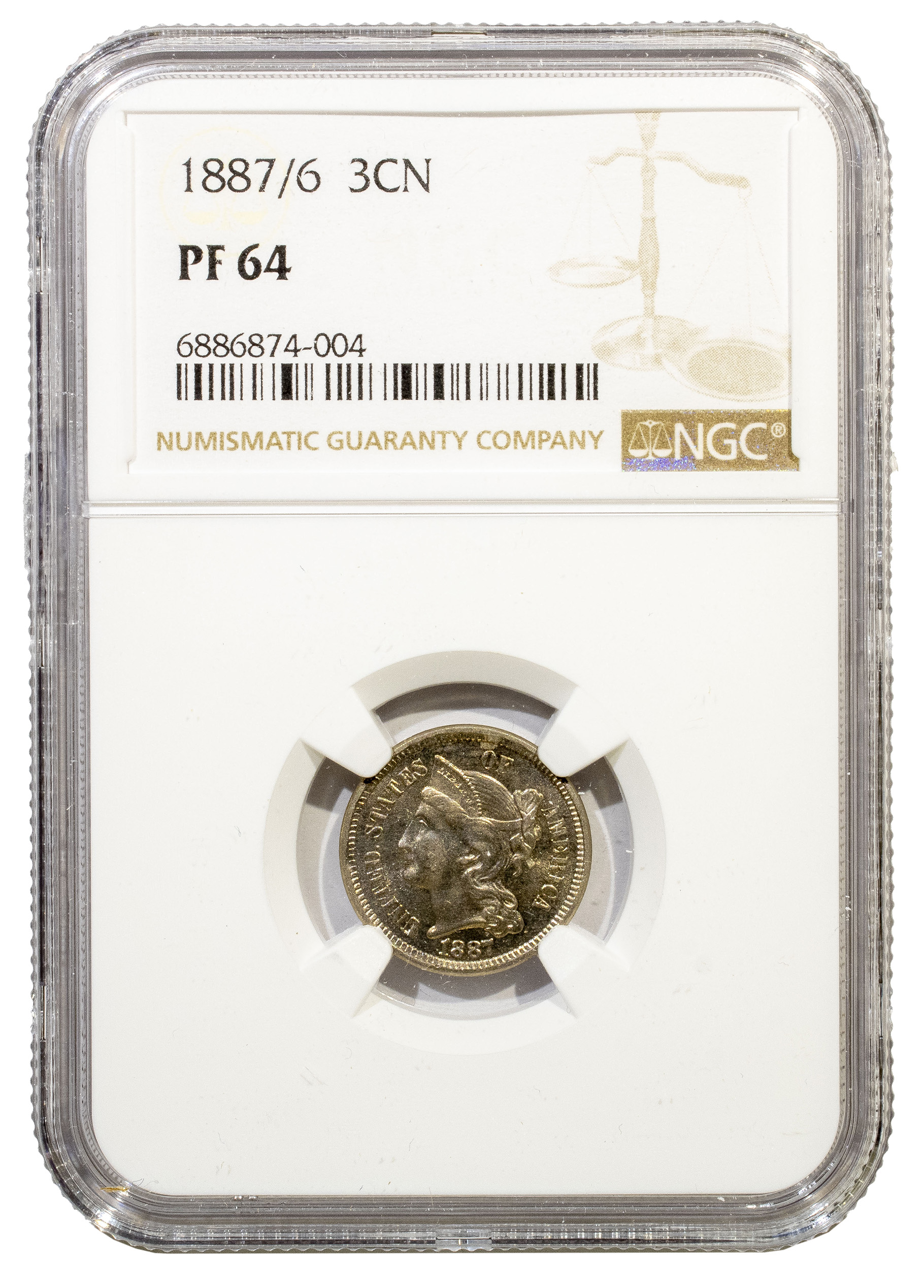 NGC Proof-64 1887/6 Nickel Three-Cents