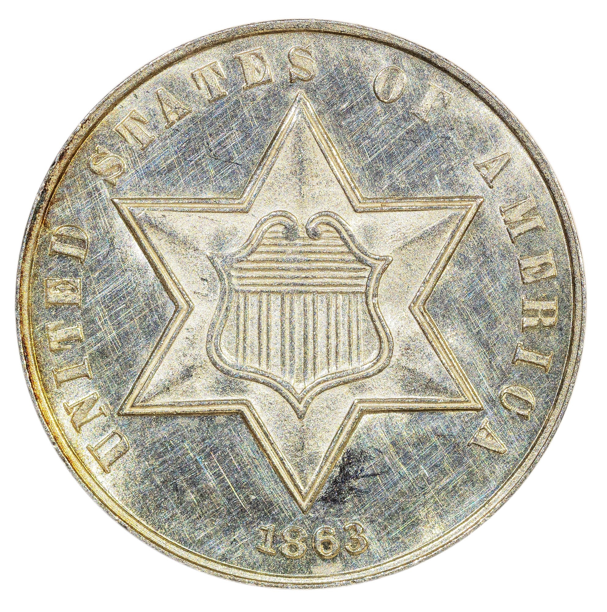 MS-60 Details 1863 Silver Three-Cents