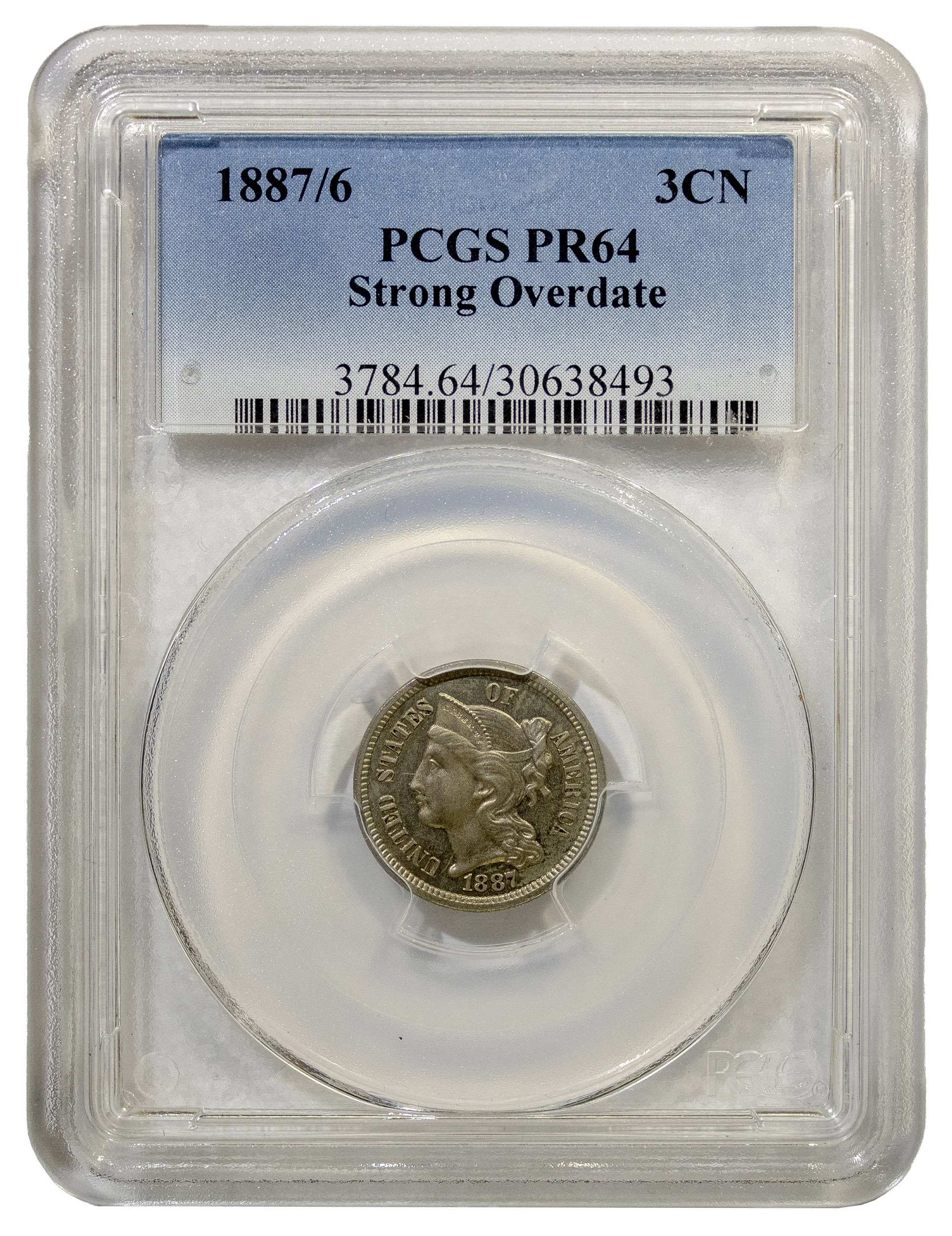 PCGS Proof-64 1887/6 Nickel Three-Cents