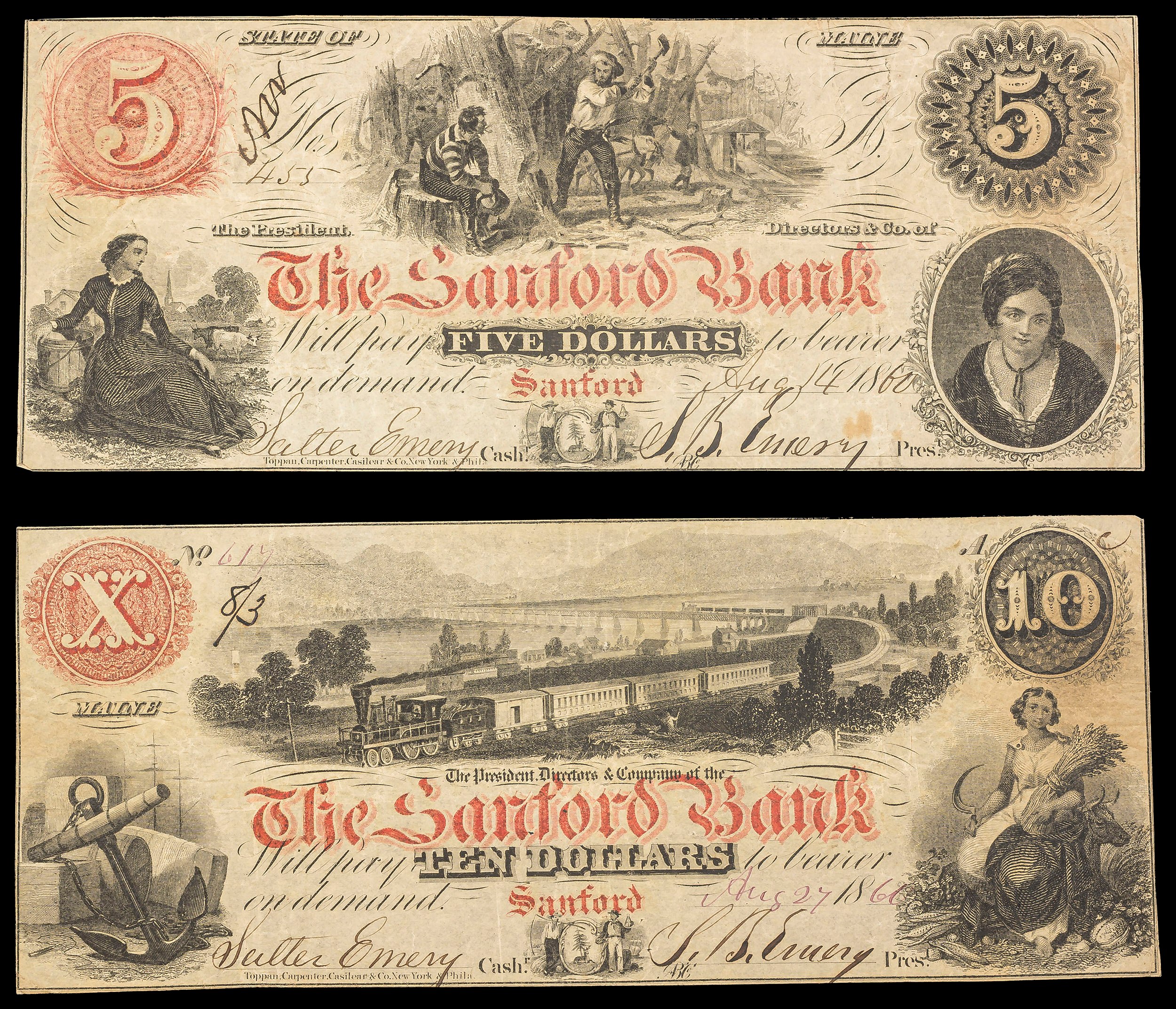 Maine. Sanford. Sanford Bank $5 & $10 Pair