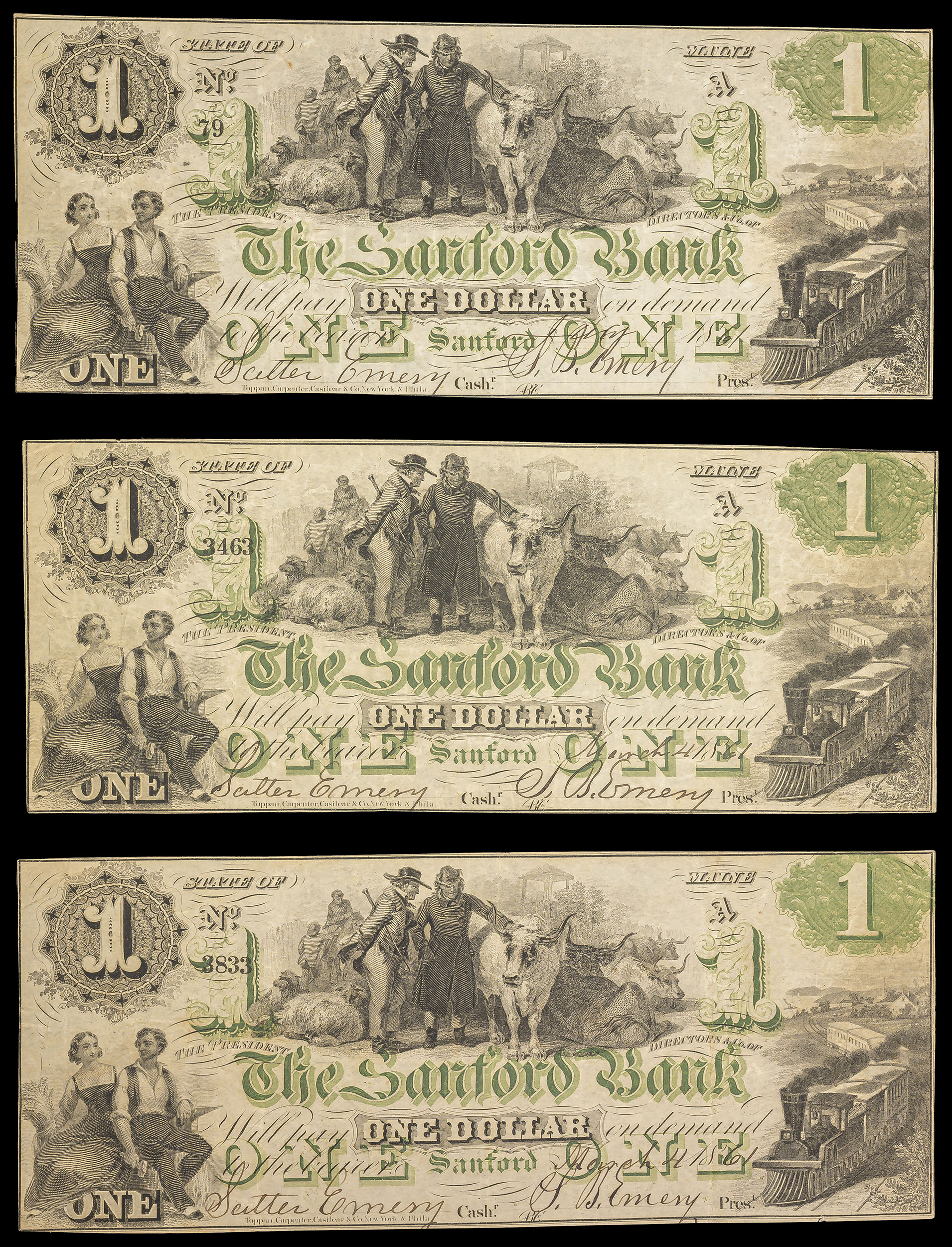 Maine. Sanford. Sanford Bank $1 Trio
