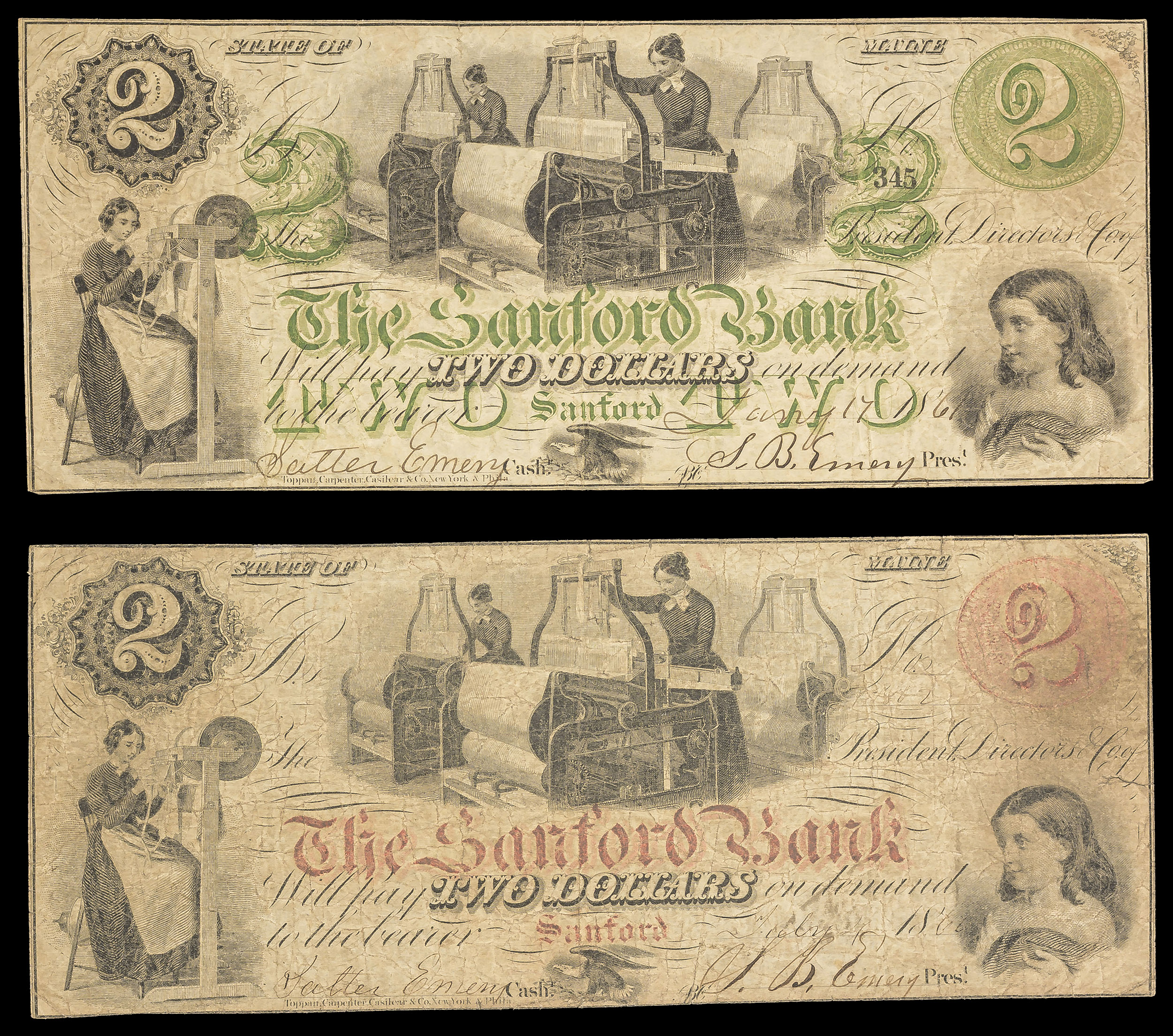 Maine. Sanford. Sanford Bank $2 Pair